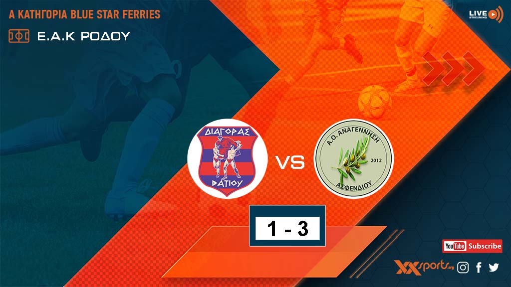 Η Αναγέννηση Ασφενδιού πέτυχε μια σπουδαία νίκη στο Καρακόνερο απέναντι στον Διαγόρα Βατίου με 1-3 για την 5η αγωνιστική της Α’ κατηγορίας. Δείτε τις καλύτερες φάσεις και τα γκολ της αναμέτρησης.
