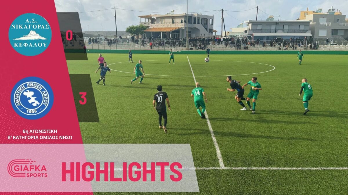 Για την 6η αγωνιστική της Β’ κατηγορίας του Ομίλου νήσων η Α.Ε Λέρου με γκολ απ’ τους Μπάκα (2) και Ζαφειρόπουλος επικράτησε στην Κέφαλο του Νικαγόρα. Δείτε τις καλύτερες φάσεις και τα γκολ της αναμέτρησης απ’ το giafkasports.gr