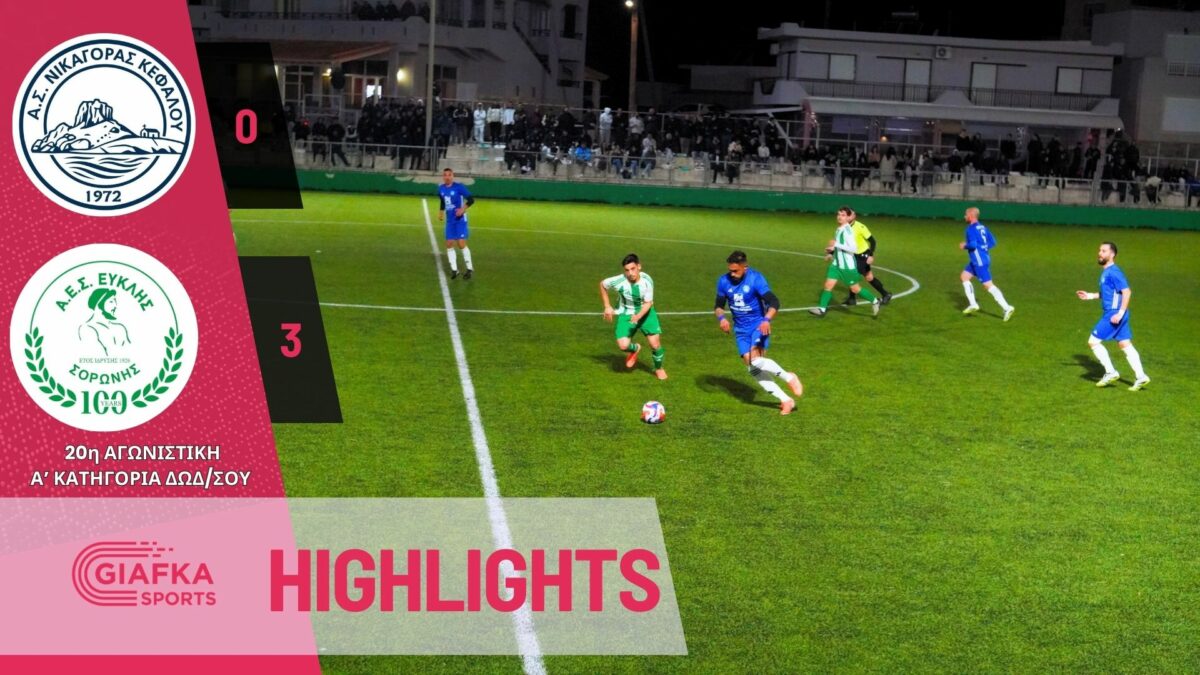 Για την 20η αγωνιστική της Α’ κατηγορίας ο Ευκλής Σορωνής επικράτησε με 0-3 του Νικαγόρα στο γήπεδο Κεφάλου. Δείτε τα highlights της αναμέτρησης απ’ το giafkasports.gr