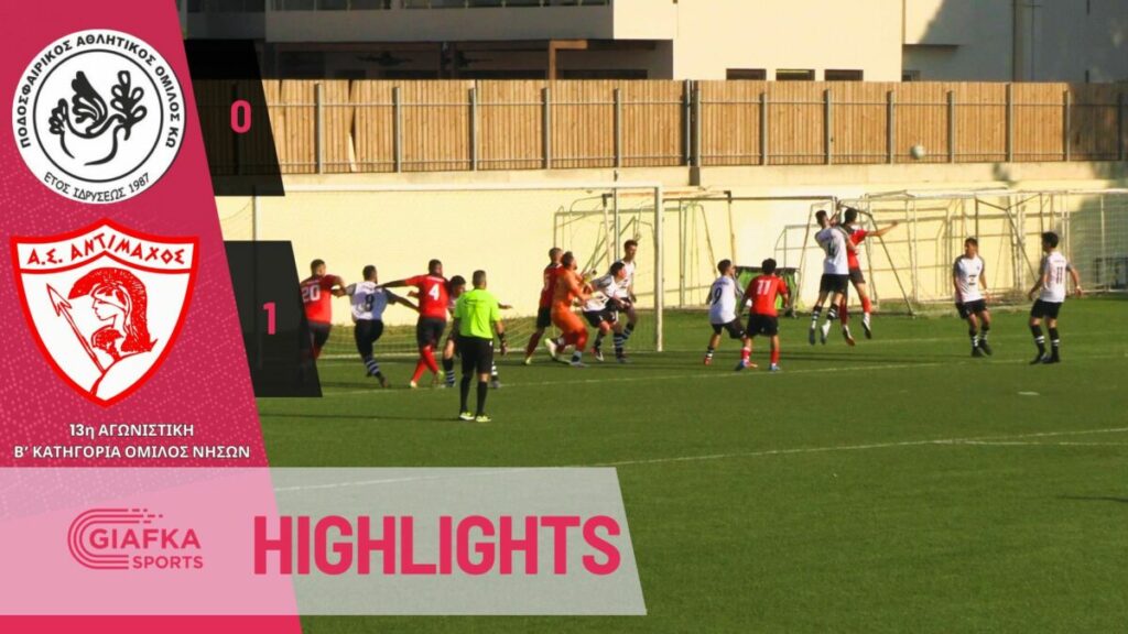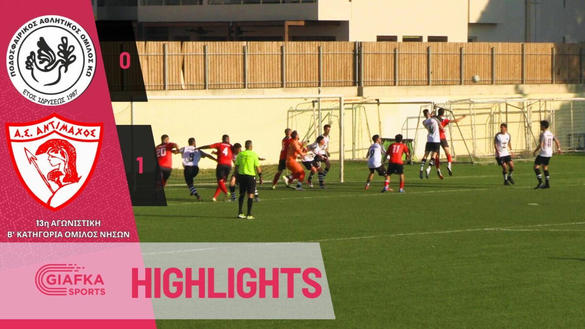 Με το γκολ του Νίκου Ανδρογιώργη ο Αντίμαχος επικράτησε με 0-1 του ΠΑΟΚ Κω στο παλιό γήπεδο Ανταγόρας για την 13η αγωνιστική της Β’ κατηγορίας του Ομίλου νήσων και είναι αγκαλιά με τον τίτλο και την άνοδο στην Α’ κατηγορία. Δείτε τα highlights της αναμέτρησης απ’ το giafkasports.gr