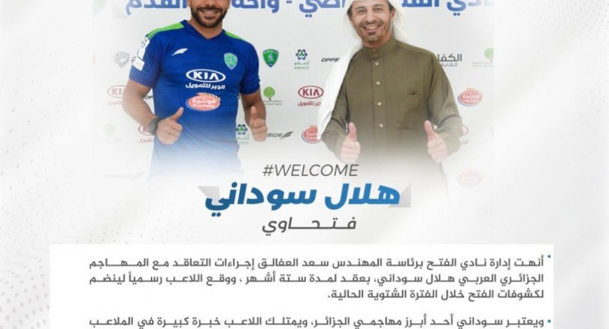 Λίγες μέρες μετά την αποδέσμευσή του, από τον Ολυμπιακό, ο Χιλάλ Σουντανί βρήκε ομάδα, καθώς ανακοινώθηκε από την Αλ Φατέχ.