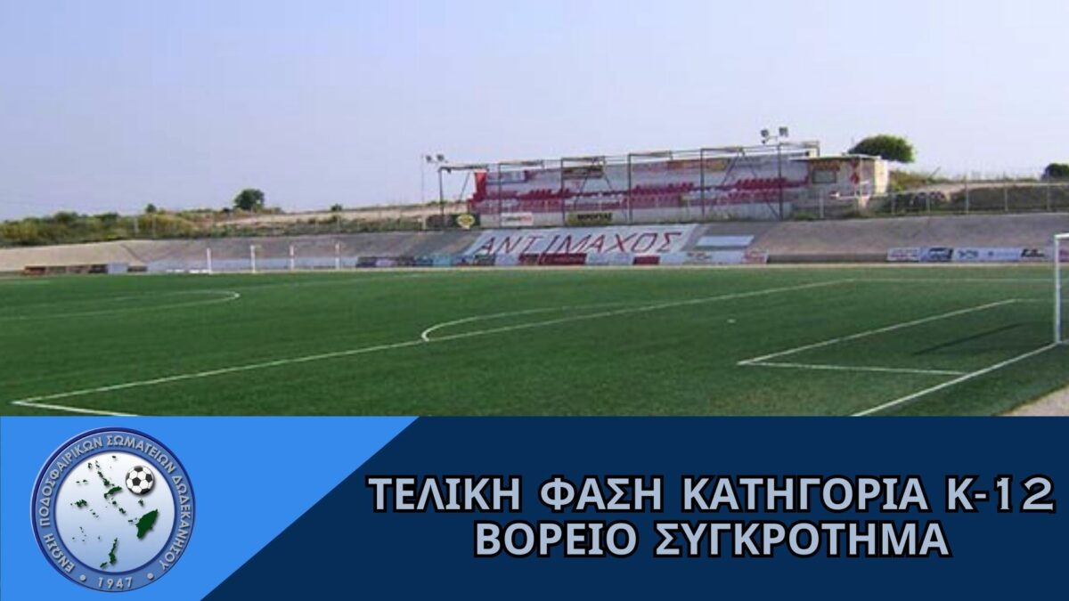 Η τελική φάση της Κ-12 σε όλους τους Ομίλους θα πραγματοποιηθεί την Κυριακή στο γήπεδο Αντιμάχειας από νωρίς το πρωί μέχρι αργά το απόγευμα ενώ το παρών θα δώσει και ο πρόεδρος της επιτροπής καλλιέργειας και ανάπτυξης της ΕΠΣ Δωδεκανήσου, Γιάννης Μικρόπουλος.