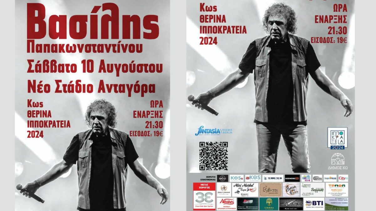 fΟ αγαπημένος καλλιτέχνης, Βασίλης Παπακωνσταντίνου στο πλαίσιο της περιοδείας του σε όλη την χώρα θα βρεθεί και στην Κω στις 10 Αυγούστου για τα θερινά Ιπποκράτεια 2024.