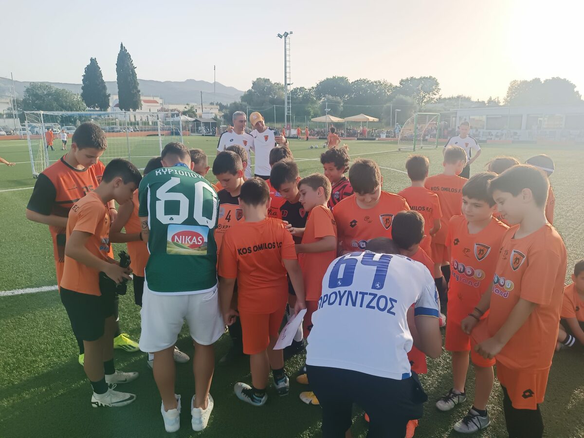 Μια ευχάριστη έκπληξη περίμενε τους νεαρούς ποδοσφαιριστές του Α.Ο Αθλοπαιδιών Κω αφού στην σημερινή προπόνηση έδωσαν το παρών ο Γιώργος Κυριόπουλος και ο Δομίνικος Προύντζος που είχαν την ευκαιρία να συνομιλήσουν και να φωτογραφηθούν με τους μικρούς αθλητές του συλλόγου.