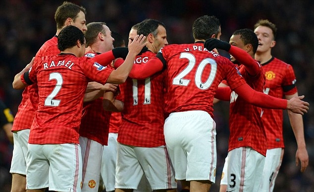 Για τους » κόκκινους διαβόλους » το σκορ άνοιξε ο Ράιαν Γκίγκς στο 13 ενώ το 2-0 διαμόρφωσε ο Φαν Πέρσι στο πρώτο λεπτό των καθυστερήσεων του 1ου ημιχρόνου.