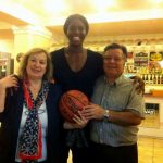 Στο τέλος της βραδιάς οι αθλήτριες χάρισαν στην κυρία Πόπη Παπακωνσταντίνου μια μπάλα μπάσκετ με τις υπογραφές όλων ενώ δεν παρέλειψαν να βγάλουν και την καθιερωμένη αναμνηστική φωτογραφία.