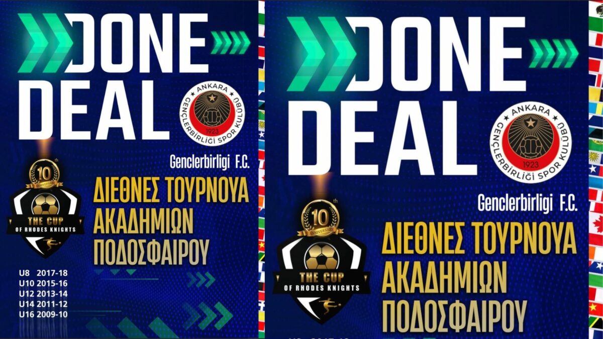 Απ την οργανωτικη επιτροπη του The cup of Rhodes Knights ειμαστε στην ευχαριστη θεση να ανακοινωσουμε την συμμετοχη της Genclerbirligi SK. Ενας σπουδαιος συλλογος της Τουρκιας με πολυ μεγαλη παραδοση στα τμηματα υποδομων οπου και διαπρεπει. Η ομαδα της  Genclerbirligi SK εχει αναδειξει σπουδαιους ποδοσφαιριστες και θεωρειται απ τις πιο ανεπτυγμενες  ομαδες στα τμηματα υποδομων στην  γειτονικη χωρα . Την καλωσοριζουμε και ευχομαστε να απολαυσουν την διαδρομη τους στο τουρνουα μας