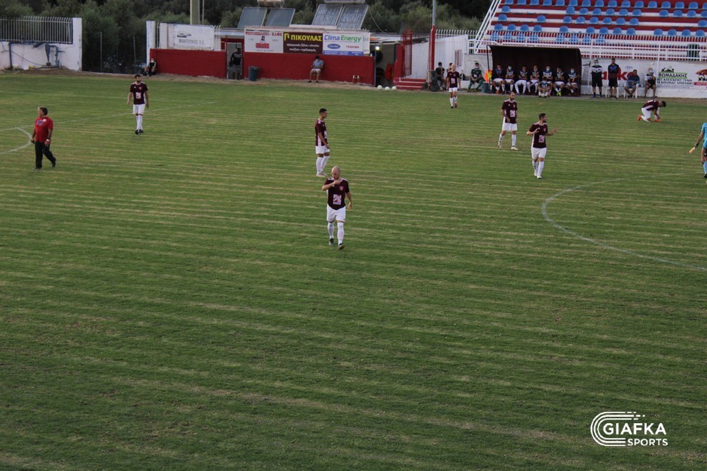 Πριν το ημίχρονο οι γηπεδούχοι κατάφεραν να ισοφαρίσουν όταν ο Γεωργιάδης έκανε την σέντρα απ’ τα αριστερά, ο Μαργαρίτης κινήθηκε σαν φορ και πλάσαρε στην δεξιά γωνία του Χατζηβασίλη για το 1-1.