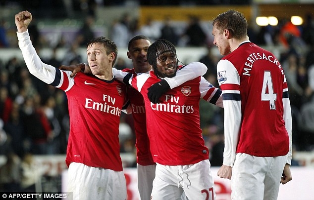 Μετά την υπερπροσπάθεια και τη νίκη στο Μόναχο κόντρα στη Μπάγερν που, όμως, δεν τους ήταν αρκετή για να πάρουν την πρόκριση στα προημιτελικά του Champions League, οι παίκτες του Αρσέν Βενγκέρ δυσκολεύτηκαν να κάμψουν την εκτός έδρας αντίσταση της Σουόνσι, αλλά τελικά τα κατάφεραν με 2-0, χάρη στο «ξέσπασμά» τους στο τελευταίο 20λεπτο του αγώνα,