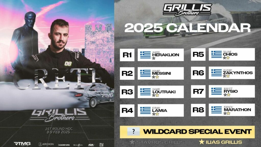 Η πρεμιέρα του Πανελληνίου Πρωταθλήματος Drift θα πραγματοποιηθεί στο γραφικό λιμάνι του Ηρακλείου με το Αθλητικό Σωματείο ΑΣΗ να αναλαμβάνει να διοργανώσει τον αγώνα και να φιλοξενήσει οδηγούς, ομάδες και θεατές.