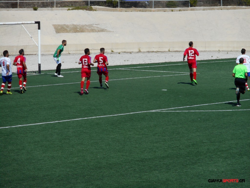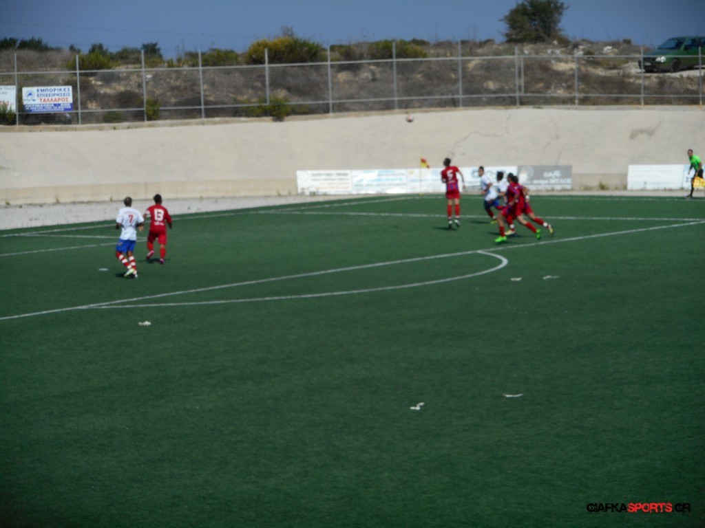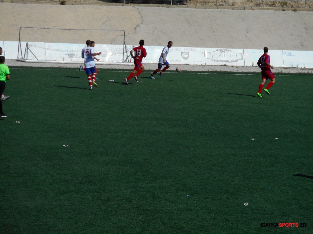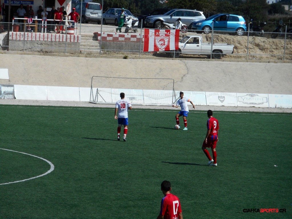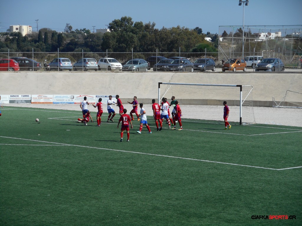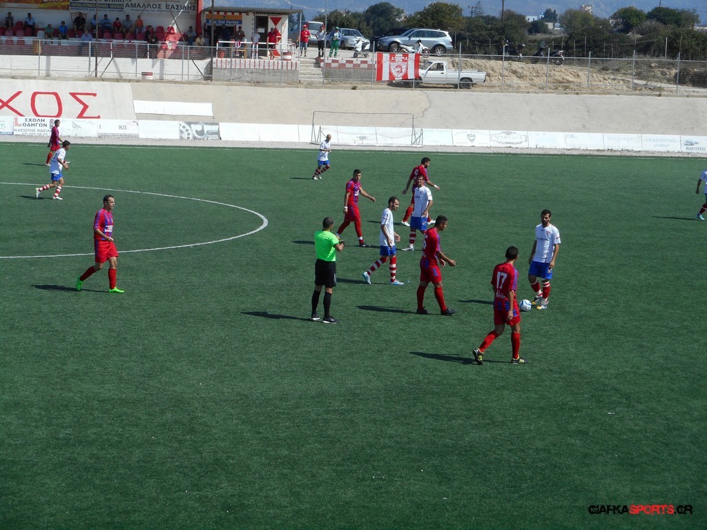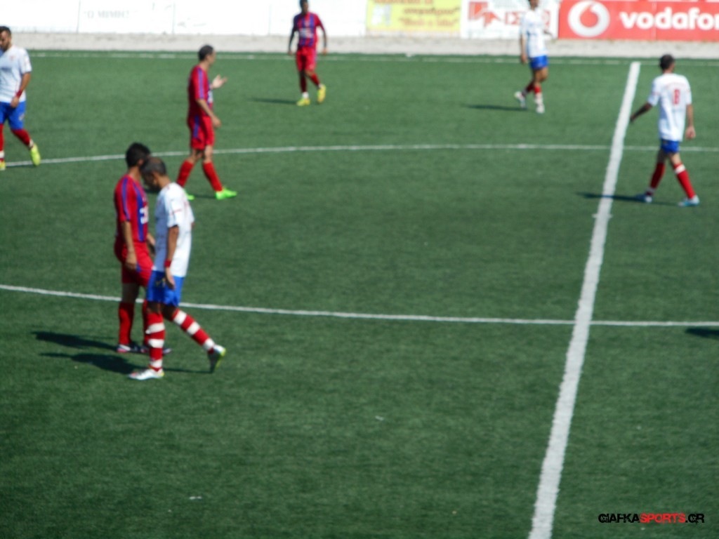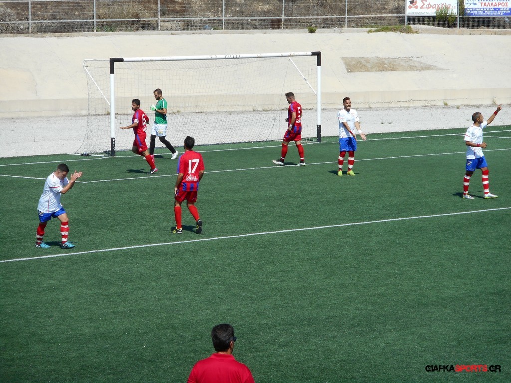 Οι «κόκκινοι» προσπαθώντας απ’ την αρχή απ’ τα πλάγια να επιτεθούν κατάφεραν μόλις στο 12ο λεπτό να πάρουν προβάδισμα στο σκορ όταν ο Χατζησουλεϊμάν έκανε την σέντρα απ’ τα δεξιά και ο Συντιχάκης που κινήθηκε ωραία στο πρώτο δοκάρι έστειλε την μπάλα στα δίχτυα για το 1-0.