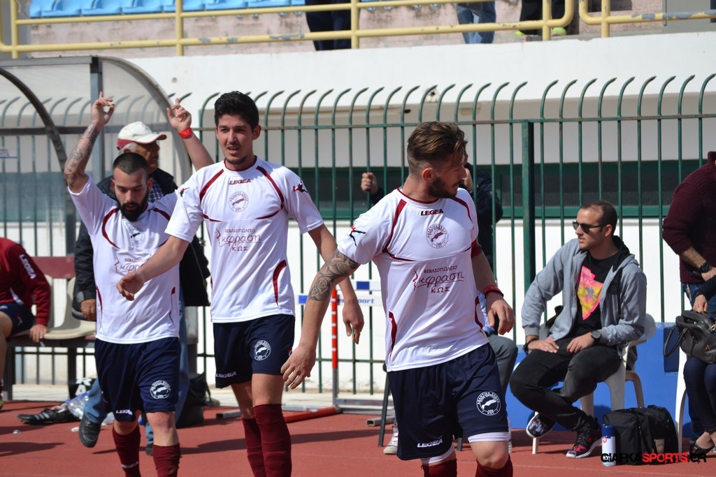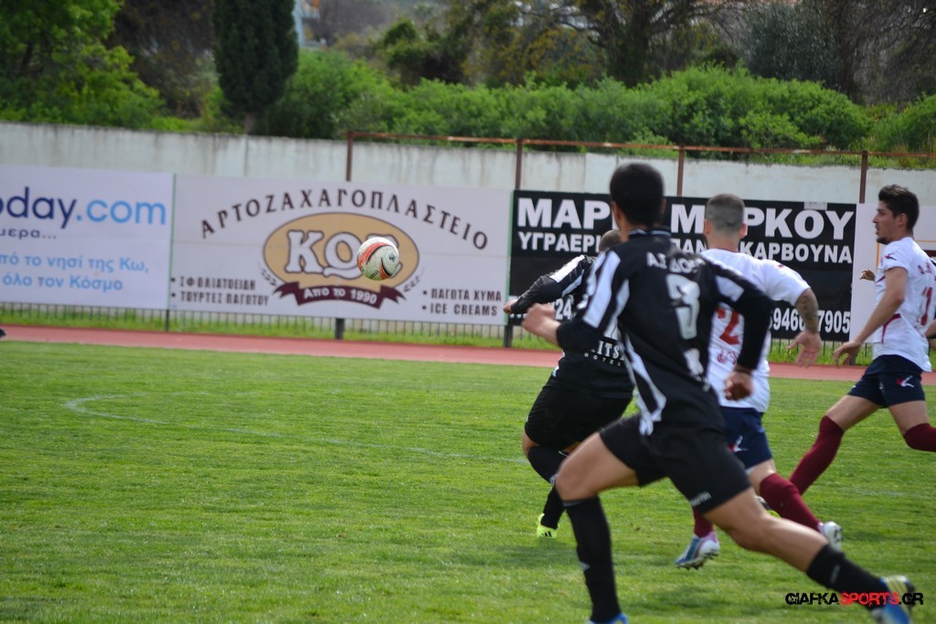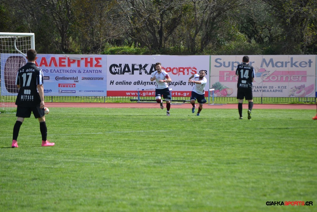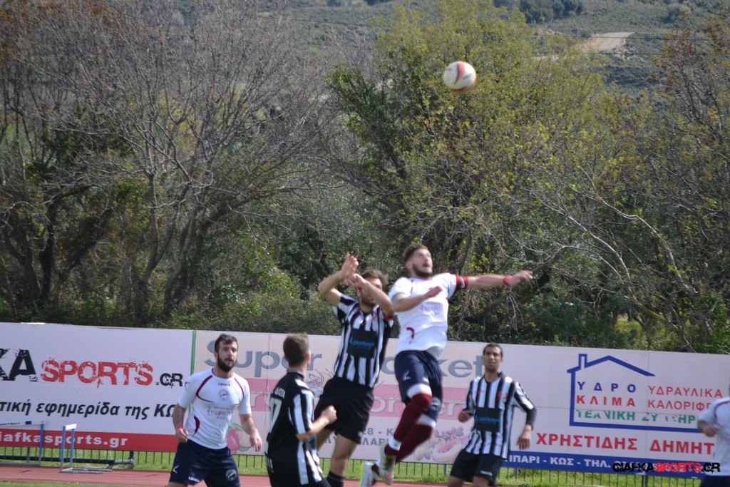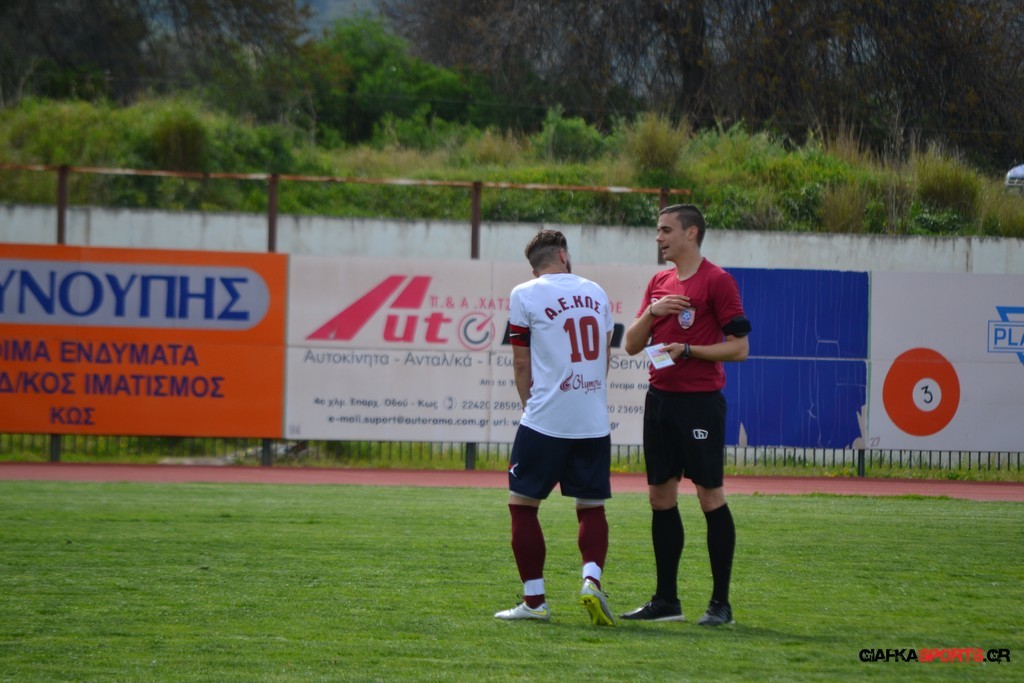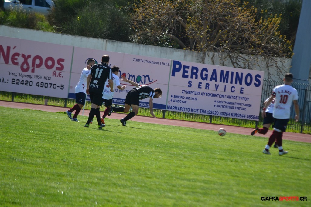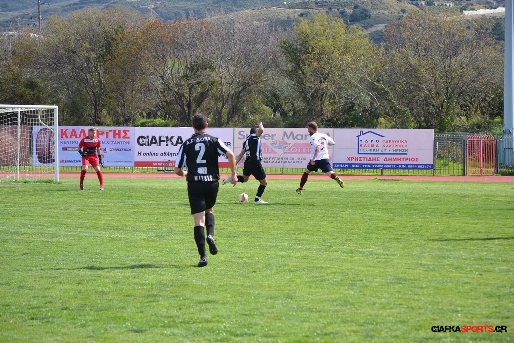 Με γκολ του Δημήτρη Παντελή στο 90ο λεπτό η Δόξα Καρδάμαινας ισοφάρισε την Α.Ε Κω που είχε προηγηθεί στο 55′, διατήρησε την διαφορά των 8 βαθμών και έκανε ένα ακόμη βήμα για την κατάκτηση του φετινού τίτλου. Οι “βυσσινί” παρόλο τις απουσίες τους, και παρόλο που δεν είχαν τον Λεωνίδα Κούτσικα στον πάγκο για επαγγελματικούς λόγους, πάλεψαν αρκετά, ήταν καλύτεροι μέχρι και το 60ο λεπτό και κατάφεραν να πάρουν προβάδισμα με τον Κώστογλου, αλλά η Δόξα στο τελευταίο ημίωρο ανέβασε ρυθμό ,πίεσε και έφτασε στο γκολ με τον αρχηγό του Δημήτρη Παντελή στο 90′ με τους γηπεδούχους να έχουν παράπονα απ’ την Δημαράκη για την φάση απ’ την οποία προήλθε το γκολ αφού θεωρούν ότι δεν υπήρχε φάουλ.