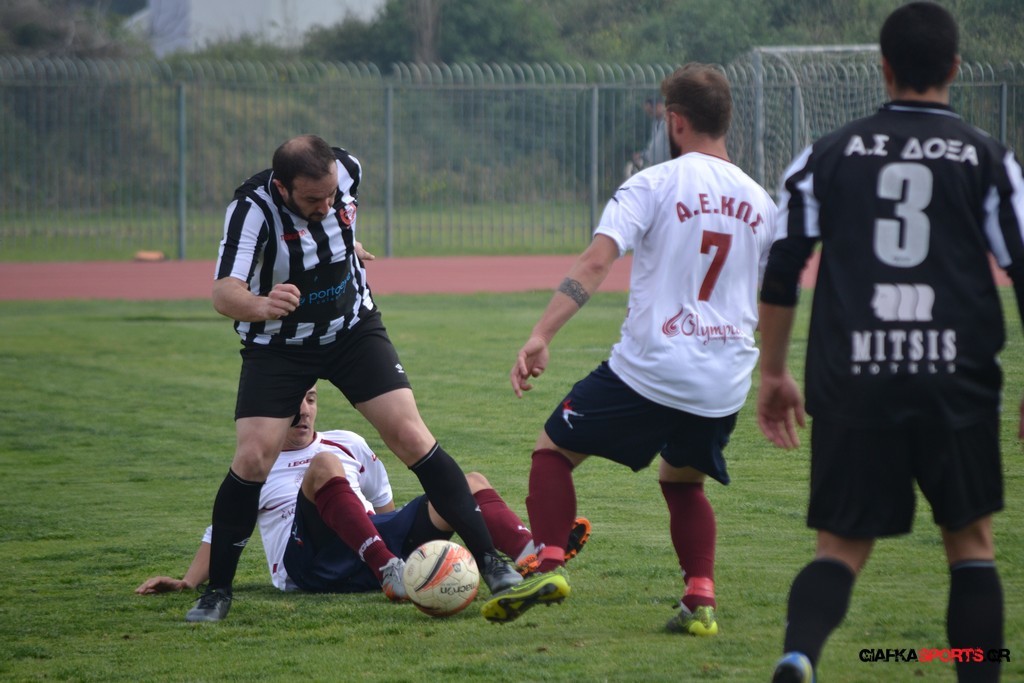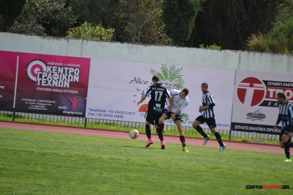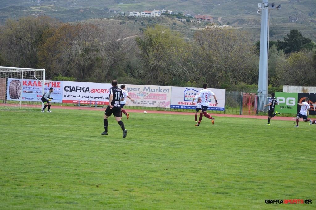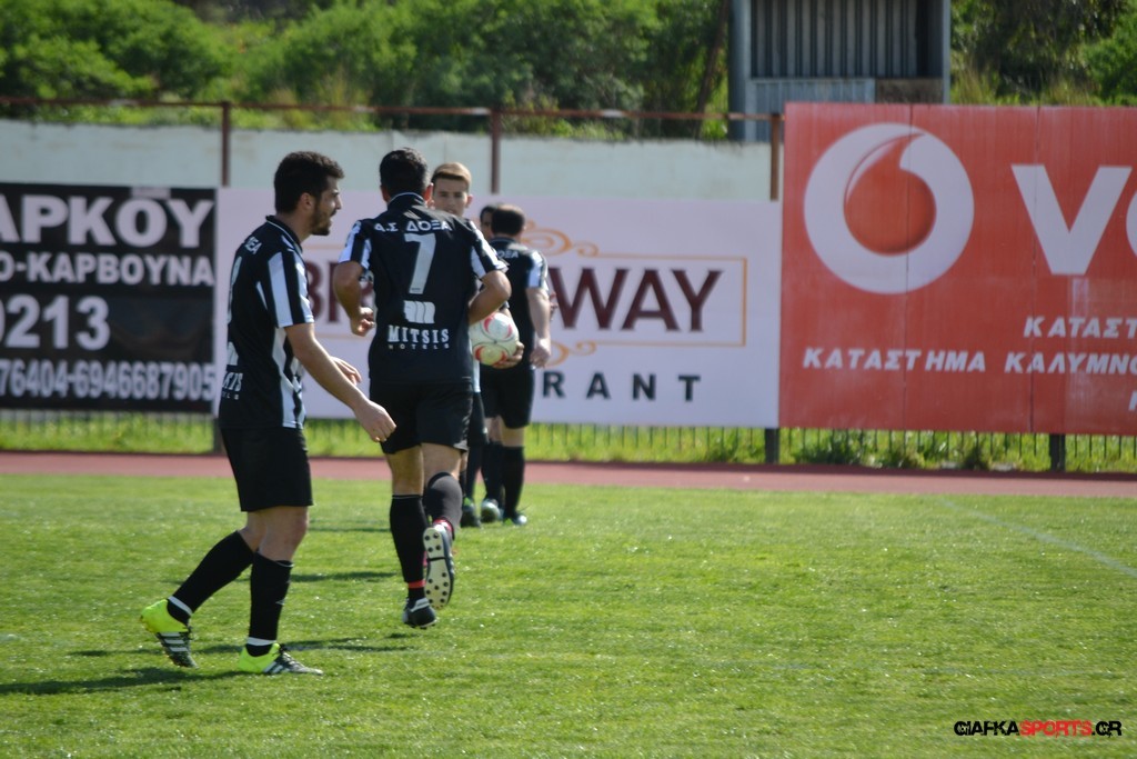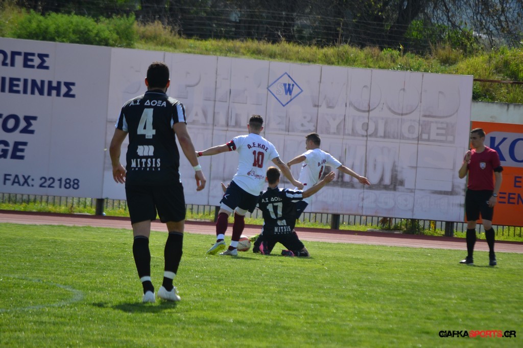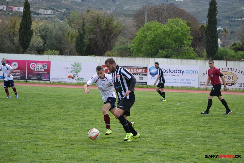 Με γκολ του Δημήτρη Παντελή στο 90ο λεπτό η Δόξα Καρδάμαινας ισοφάρισε την Α.Ε Κω που είχε προηγηθεί στο 55′, διατήρησε την διαφορά των 8 βαθμών και έκανε ένα ακόμη βήμα για την κατάκτηση του φετινού τίτλου. Οι “βυσσινί” παρόλο τις απουσίες τους, και παρόλο που δεν είχαν τον Λεωνίδα Κούτσικα στον πάγκο για επαγγελματικούς λόγους, πάλεψαν αρκετά, ήταν καλύτεροι μέχρι και το 60ο λεπτό και κατάφεραν να πάρουν προβάδισμα με τον Κώστογλου, αλλά η Δόξα στο τελευταίο ημίωρο ανέβασε ρυθμό ,πίεσε και έφτασε στο γκολ με τον αρχηγό του Δημήτρη Παντελή στο 90′ με τους γηπεδούχους να έχουν παράπονα απ’ την Δημαράκη για την φάση απ’ την οποία προήλθε το γκολ αφού θεωρούν ότι δεν υπήρχε φάουλ.
