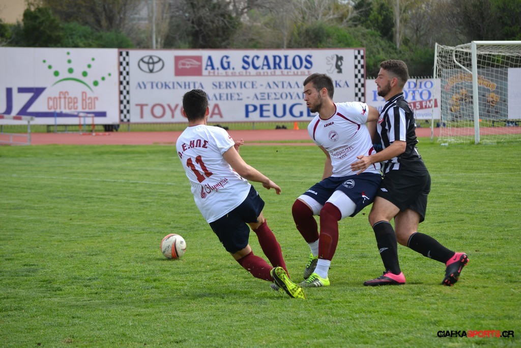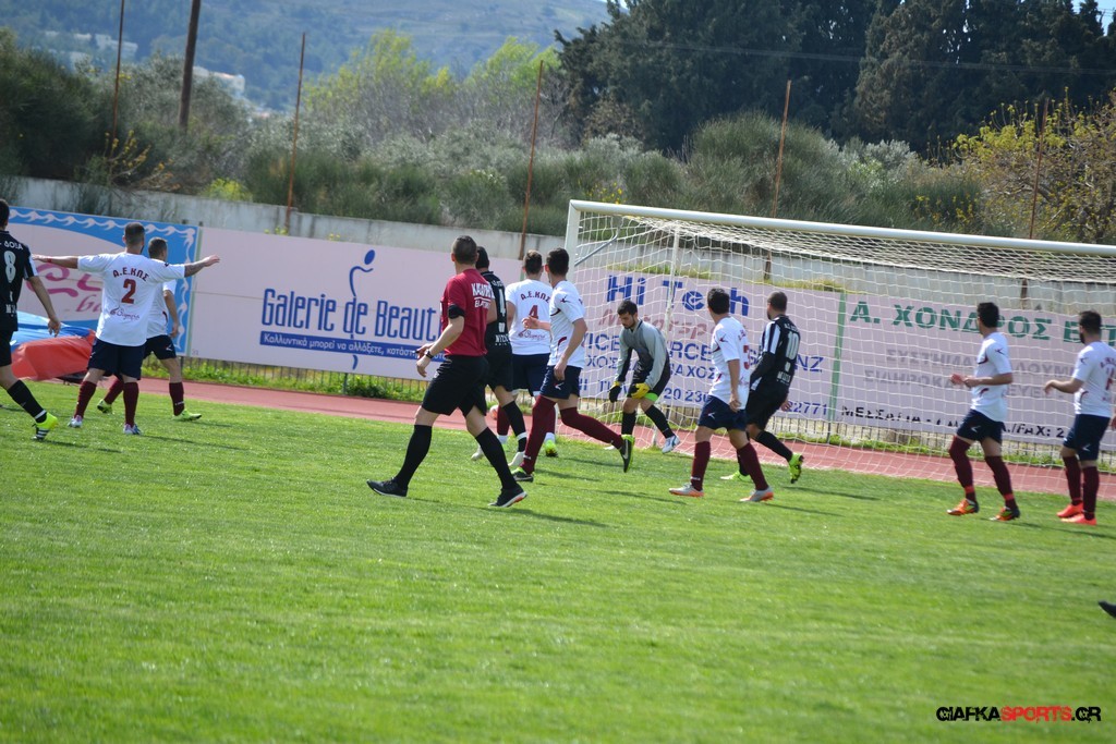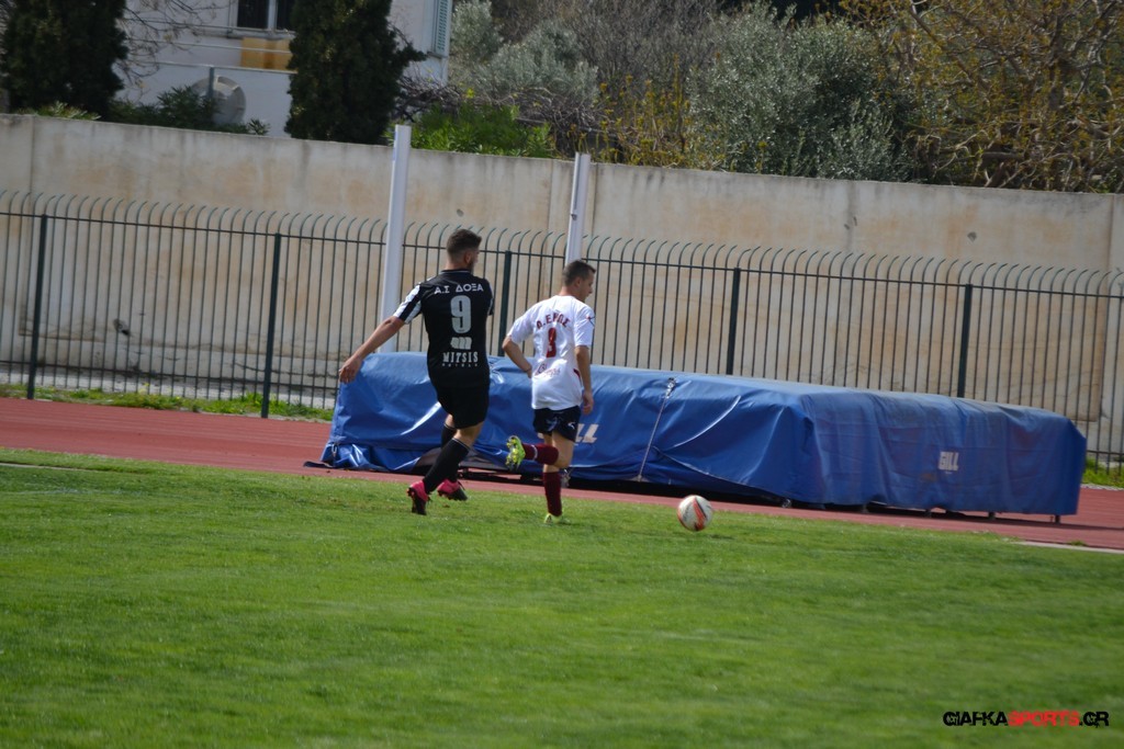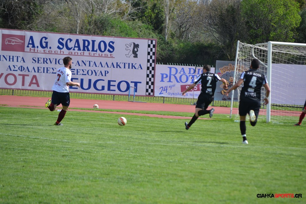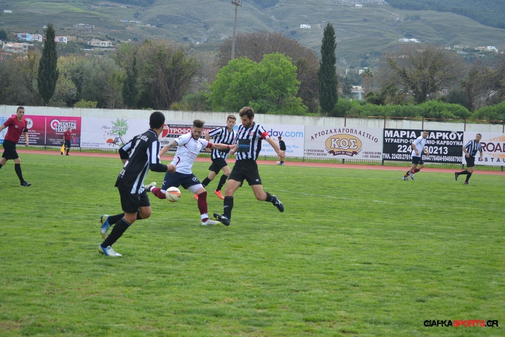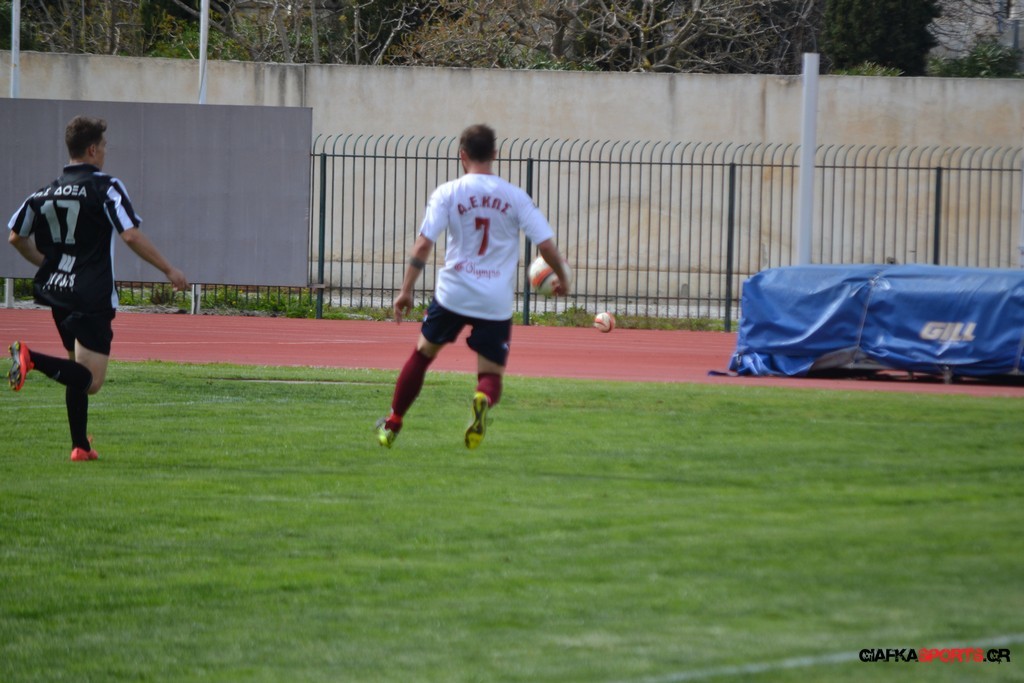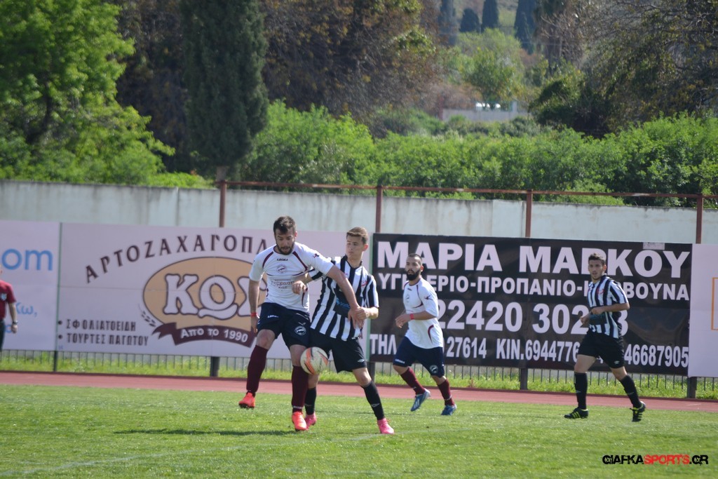Με γκολ του Δημήτρη Παντελή στο 90ο λεπτό η Δόξα Καρδάμαινας ισοφάρισε την Α.Ε Κω που είχε προηγηθεί στο 55′, διατήρησε την διαφορά των 8 βαθμών και έκανε ένα ακόμη βήμα για την κατάκτηση του φετινού τίτλου. Οι “βυσσινί” παρόλο τις απουσίες τους, και παρόλο που δεν είχαν τον Λεωνίδα Κούτσικα στον πάγκο για επαγγελματικούς λόγους, πάλεψαν αρκετά, ήταν καλύτεροι μέχρι και το 60ο λεπτό και κατάφεραν να πάρουν προβάδισμα με τον Κώστογλου, αλλά η Δόξα στο τελευταίο ημίωρο ανέβασε ρυθμό ,πίεσε και έφτασε στο γκολ με τον αρχηγό του Δημήτρη Παντελή στο 90′ με τους γηπεδούχους να έχουν παράπονα απ’ την Δημαράκη για την φάση απ’ την οποία προήλθε το γκολ αφού θεωρούν ότι δεν υπήρχε φάουλ.