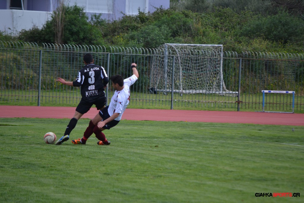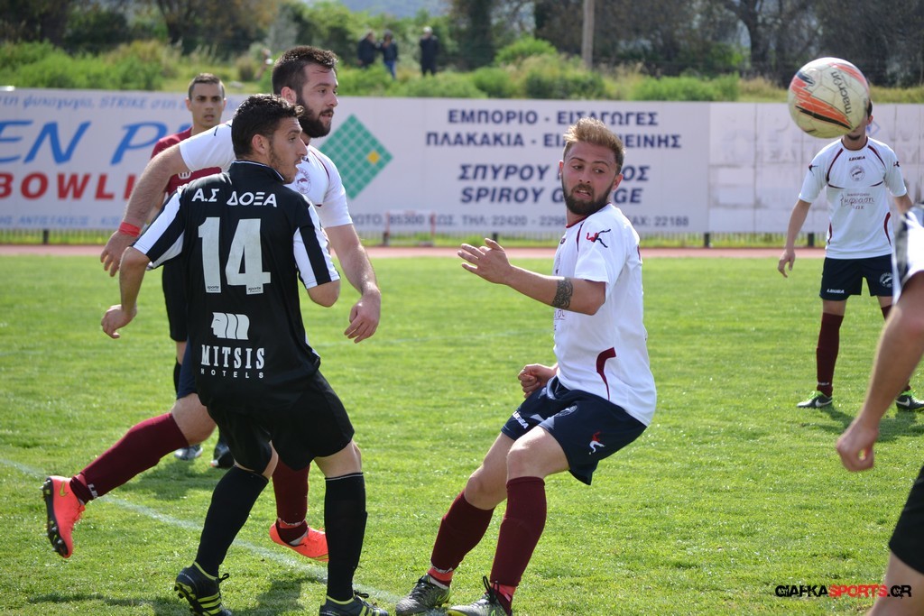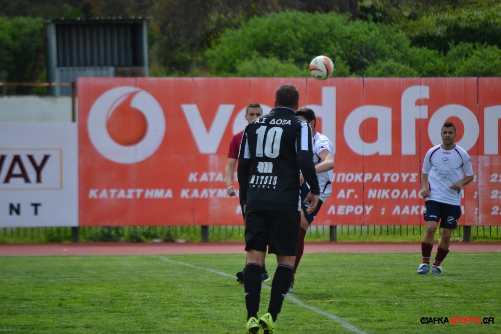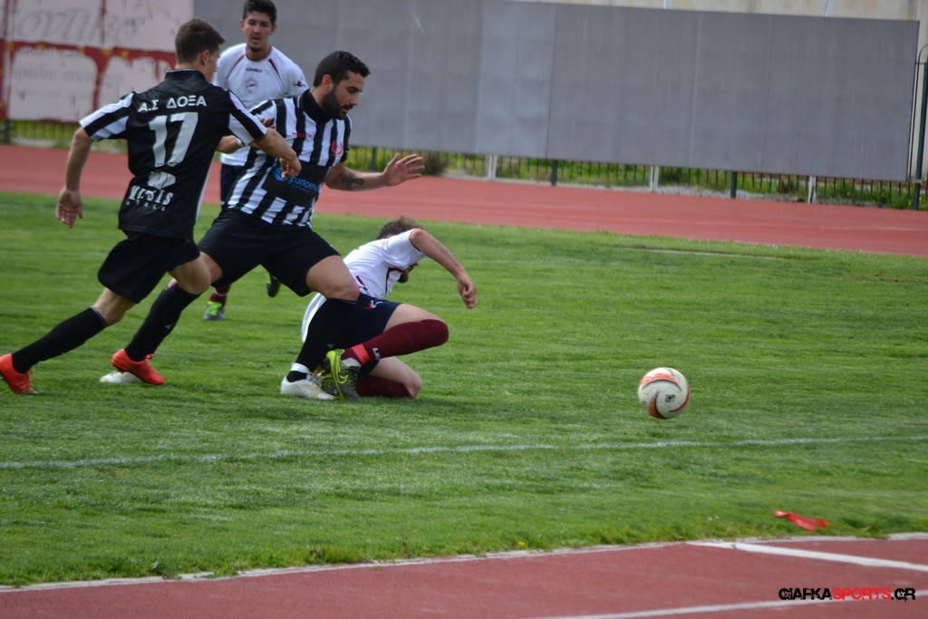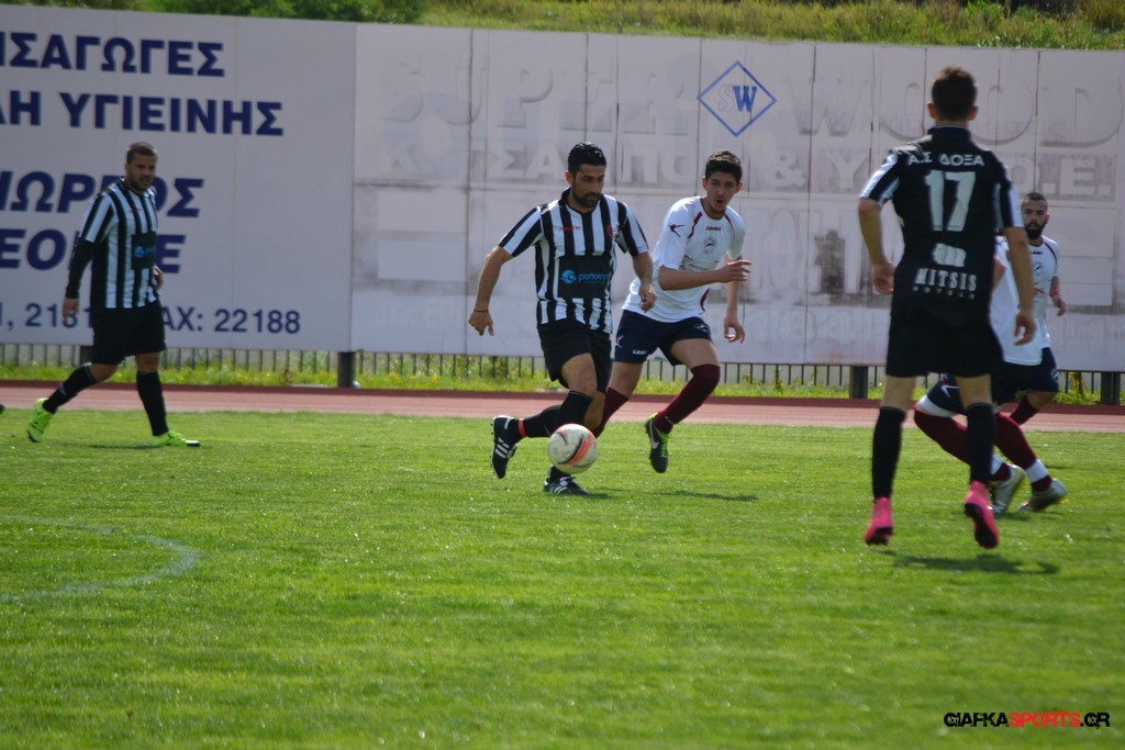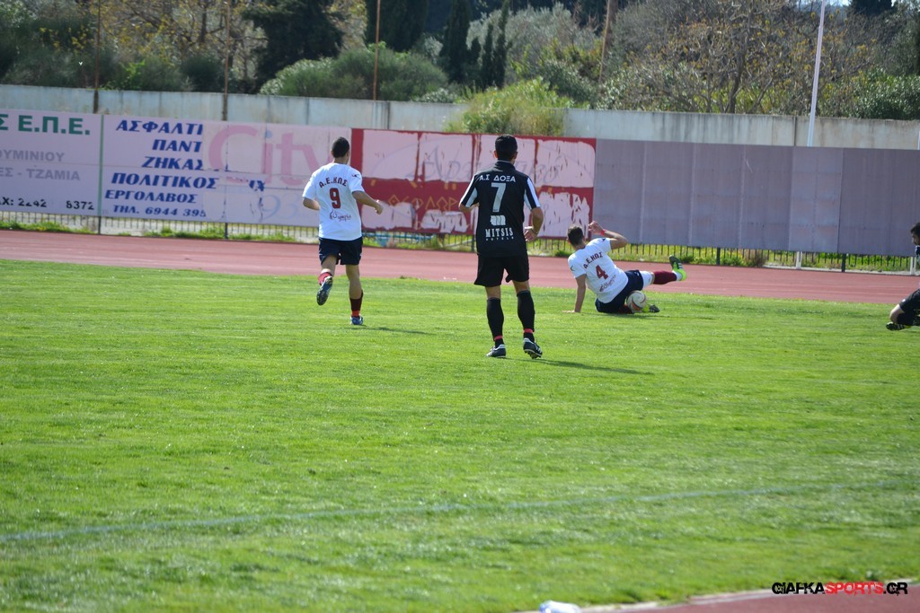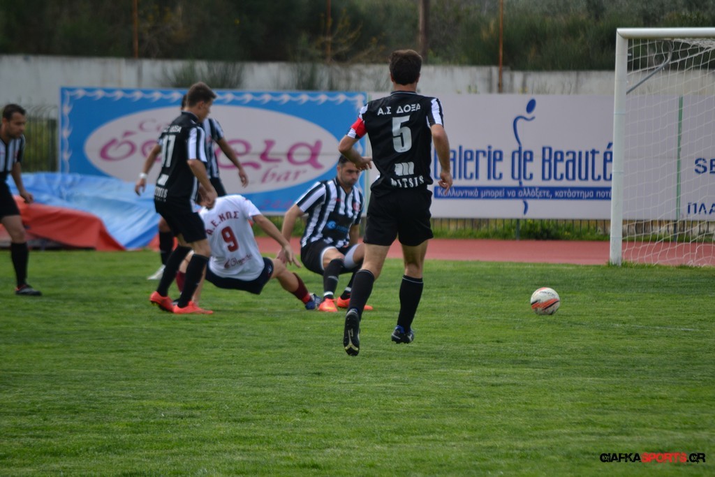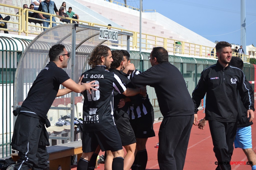 Από εκείνο το σημείο οι “βυσσινί” οπισθοχώρησαν με την Δόξα να ψάχνει είτε απ’ τα πλάγια, είτε με στημένες φάσεις να φτάσει στην ισοφάριση. Στο 75′ ο Πανόπουλος έκανε την σέντρα και η κεφαλιά του Παντελή πέρασε άουτ και στο 90′ οι δυο τους συνεργάστηκαν άψογα και ο αρχηγός της Δόξας που στο τέλος της χρονιάς κρεμά τα παπούτσια του πέτυχε το πιο σημαντικό ματς της χρονιάς.