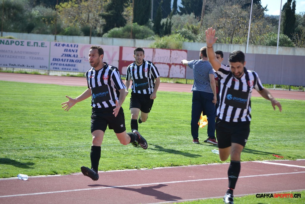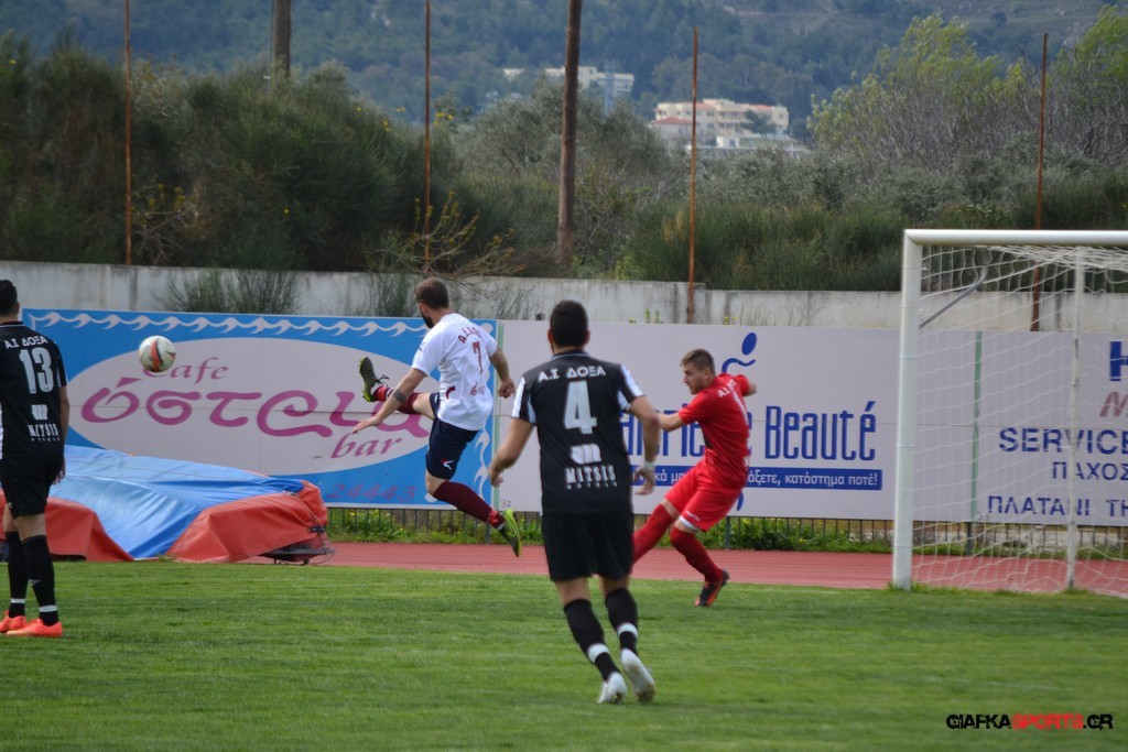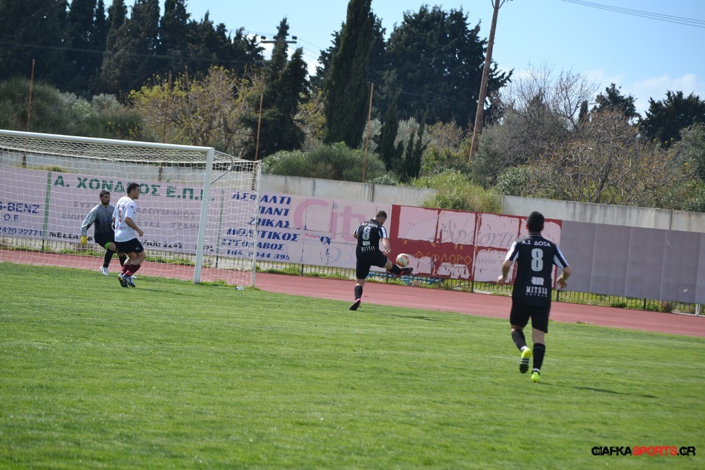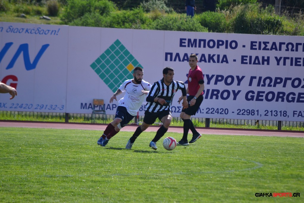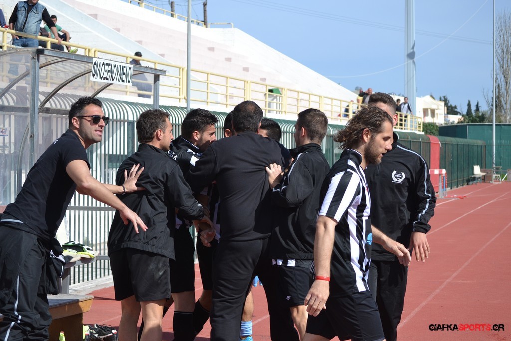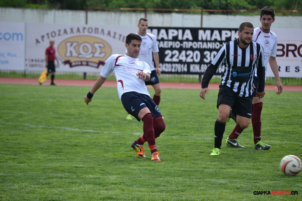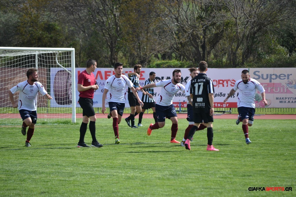 Από εκείνο το σημείο οι “βυσσινί” οπισθοχώρησαν με την Δόξα να ψάχνει είτε απ’ τα πλάγια, είτε με στημένες φάσεις να φτάσει στην ισοφάριση. Στο 75′ ο Πανόπουλος έκανε την σέντρα και η κεφαλιά του Παντελή πέρασε άουτ και στο 90′ οι δυο τους συνεργάστηκαν άψογα και ο αρχηγός της Δόξας που στο τέλος της χρονιάς κρεμά τα παπούτσια του πέτυχε το πιο σημαντικό ματς της χρονιάς.