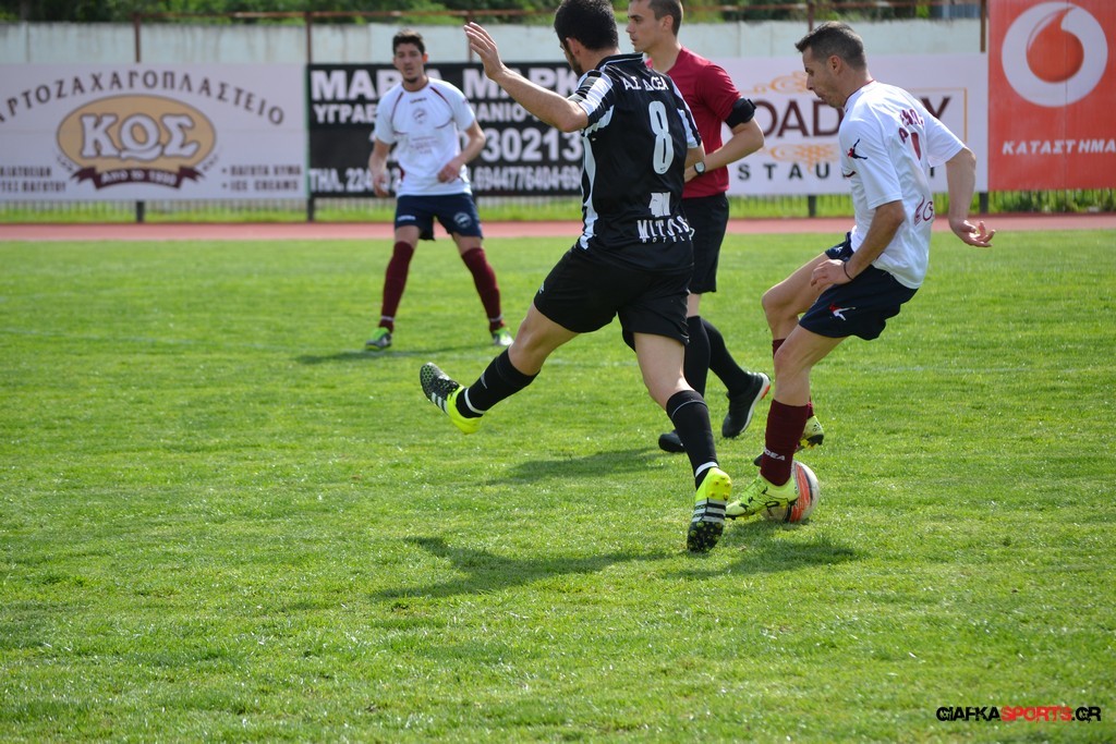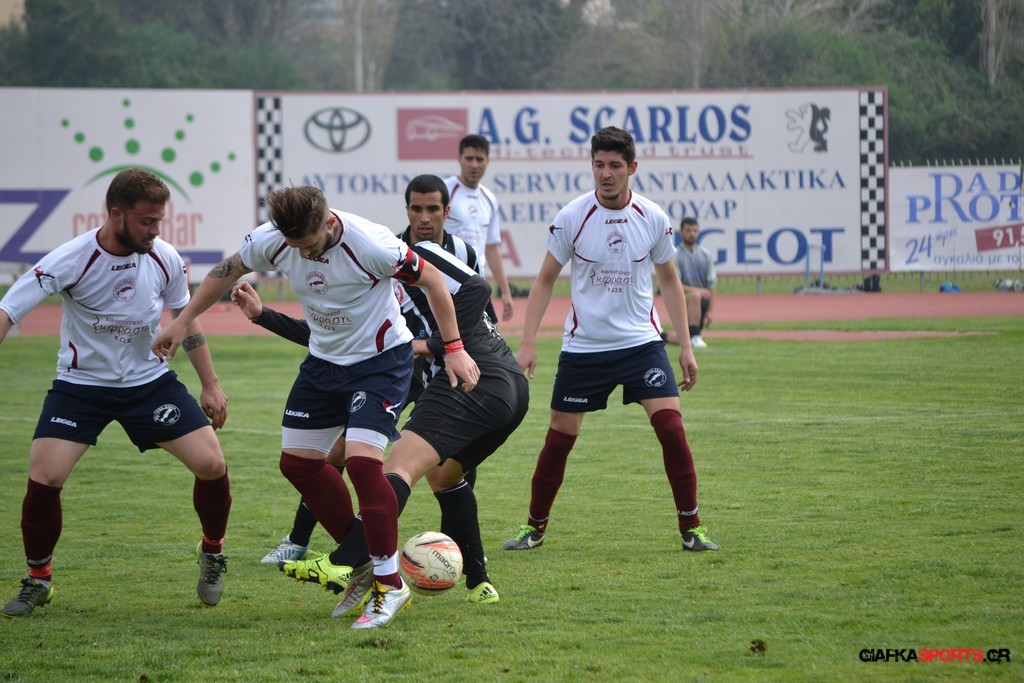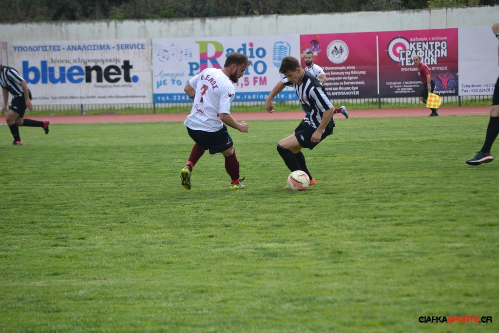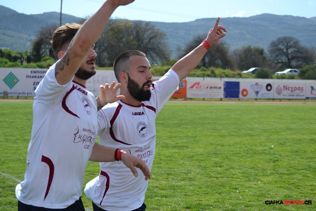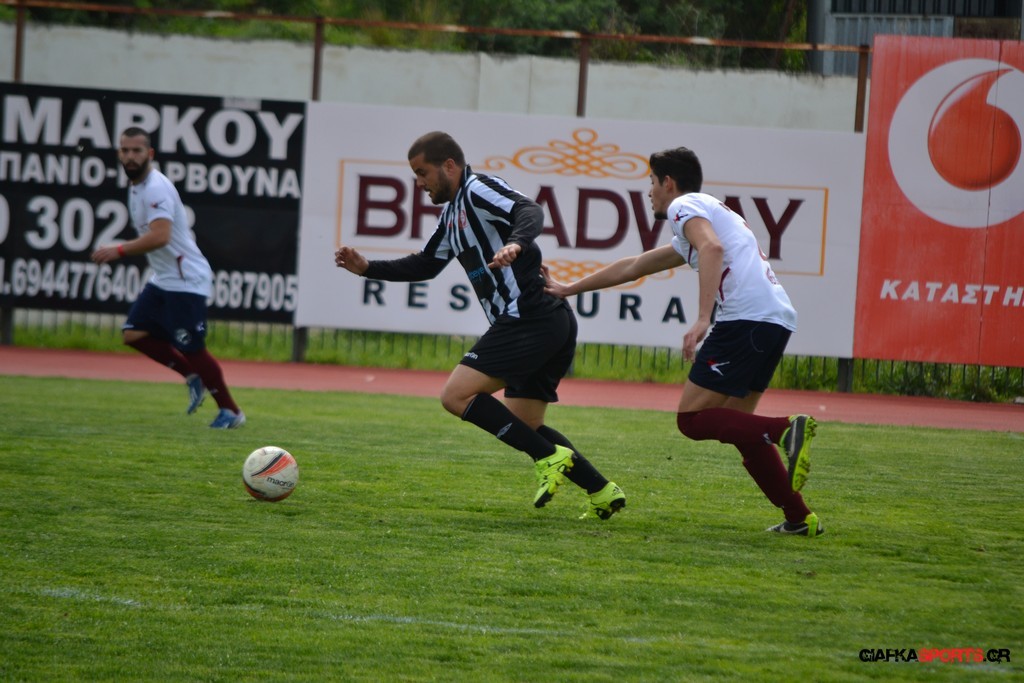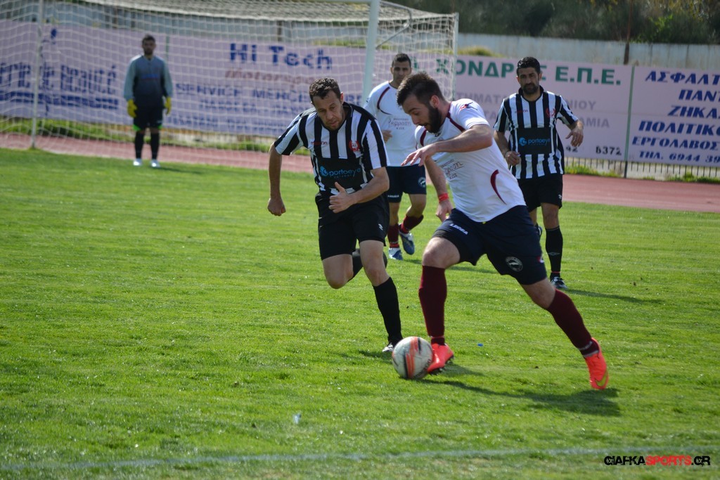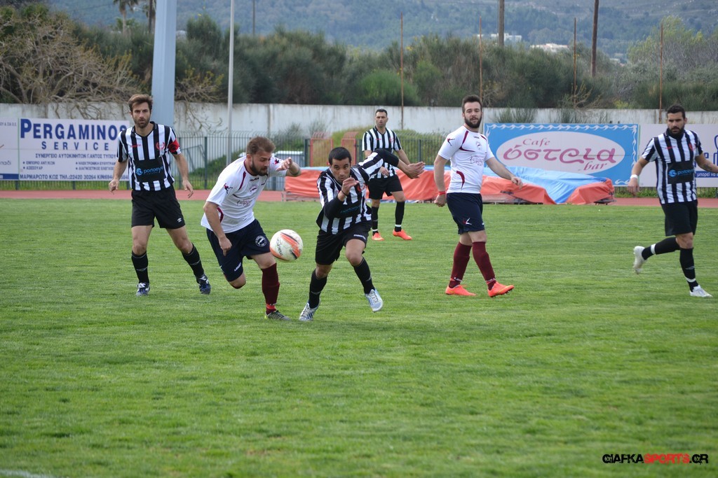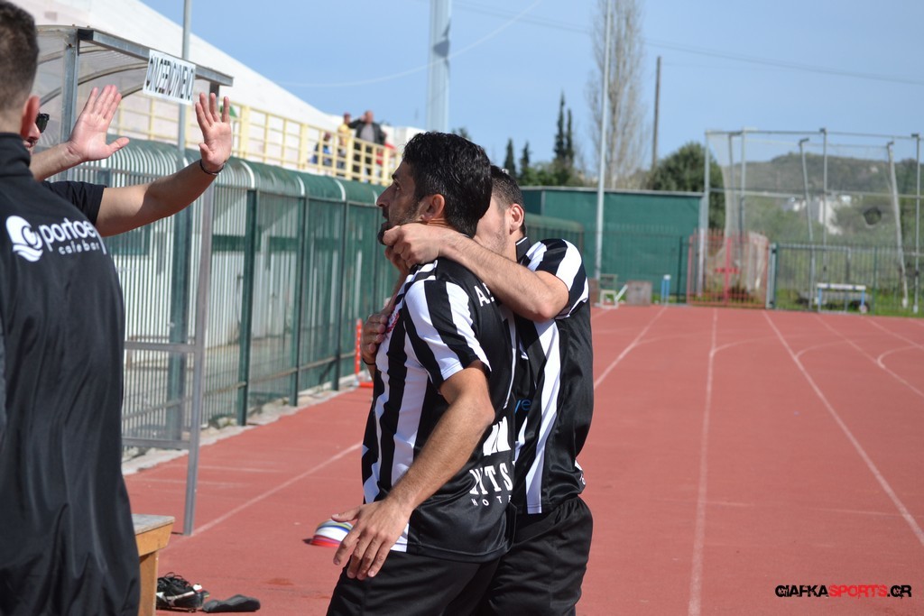 Από εκείνο το σημείο οι “βυσσινί” οπισθοχώρησαν με την Δόξα να ψάχνει είτε απ’ τα πλάγια, είτε με στημένες φάσεις να φτάσει στην ισοφάριση. Στο 75′ ο Πανόπουλος έκανε την σέντρα και η κεφαλιά του Παντελή πέρασε άουτ και στο 90′ οι δυο τους συνεργάστηκαν άψογα και ο αρχηγός της Δόξας που στο τέλος της χρονιάς κρεμά τα παπούτσια του πέτυχε το πιο σημαντικό ματς της χρονιάς.