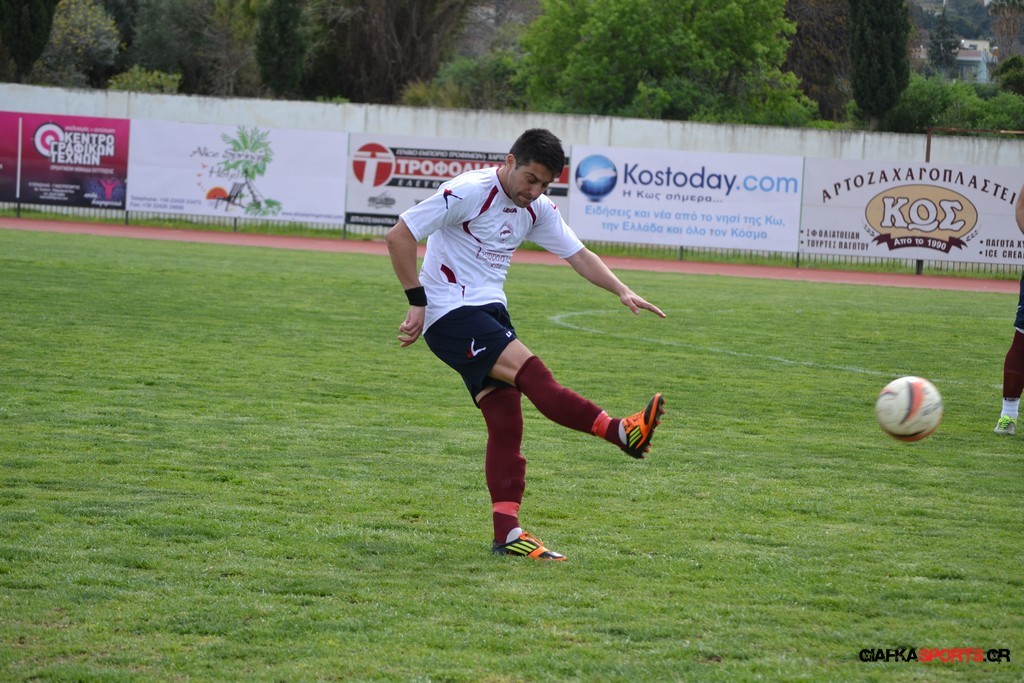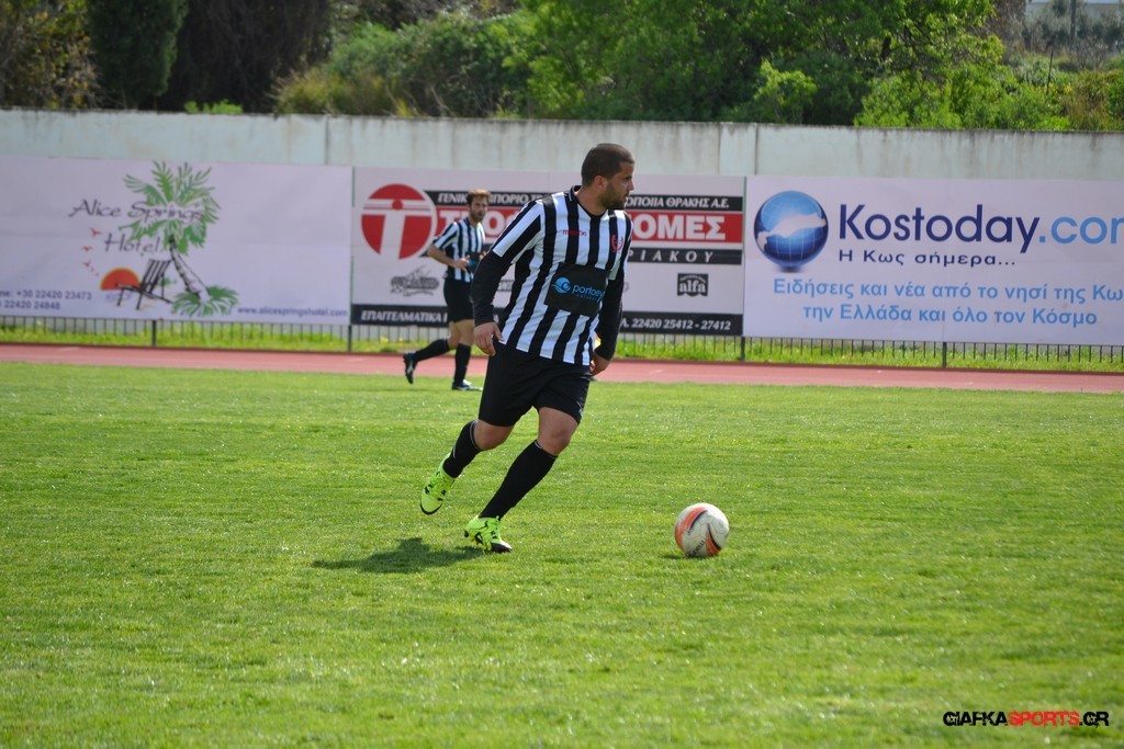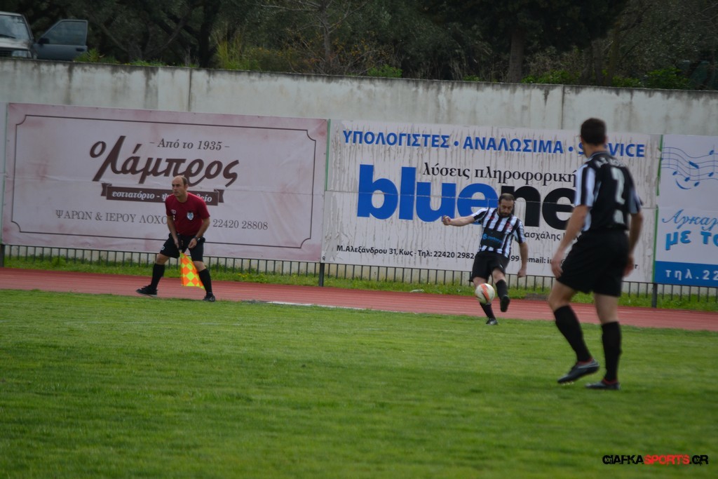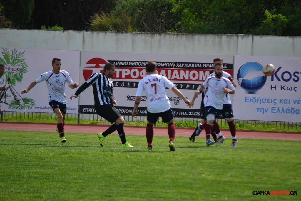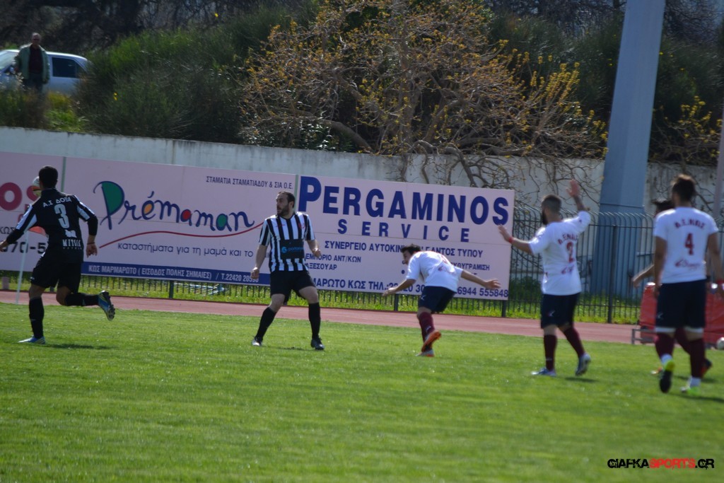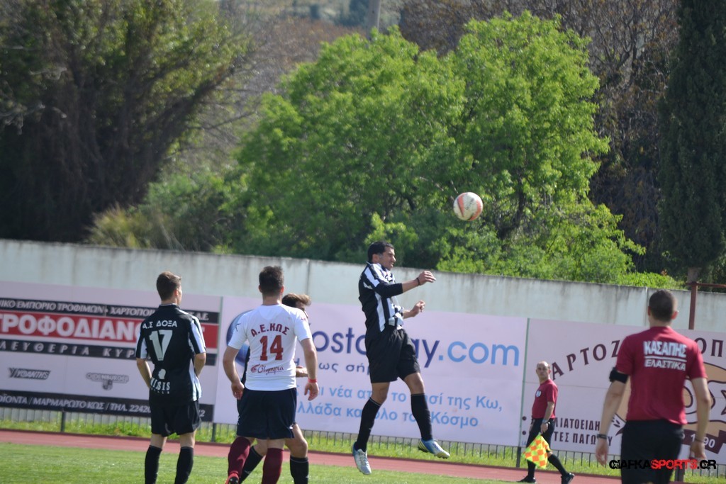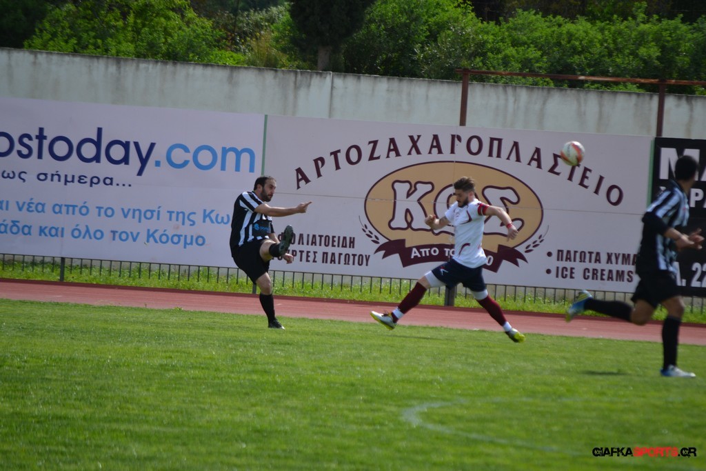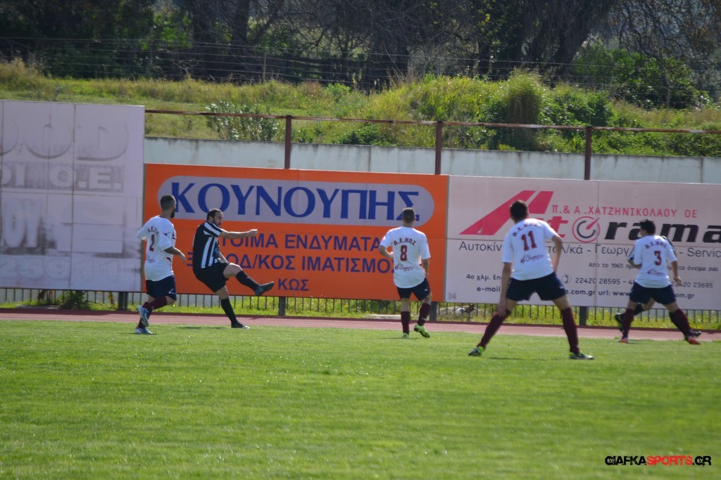 Με την έναρξη του δευτέρου μέρους η Α.Ε Κως που είχε κλείσει πολύ σωστά τους διαδρόμους, κατάφερε να σκοράρει στην κόντρα με τον Ηλιάδη στο 55′ να κάνει την παράλληλη πάσα και τον Κώστογλου να νικά τον Γιακούμαρο για το 1-0.