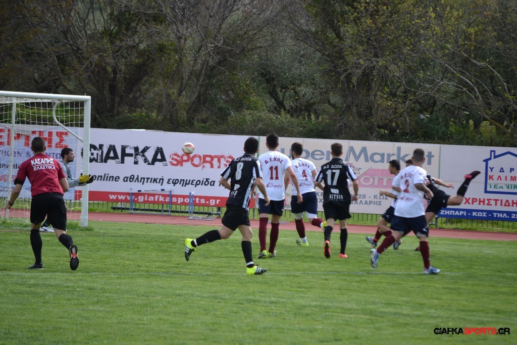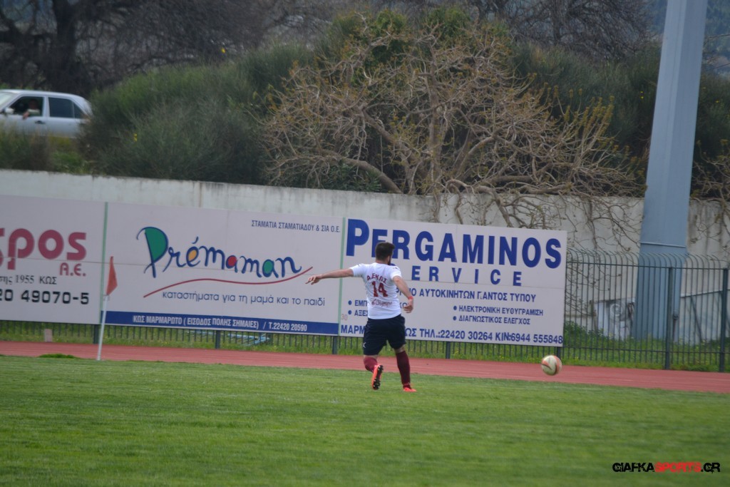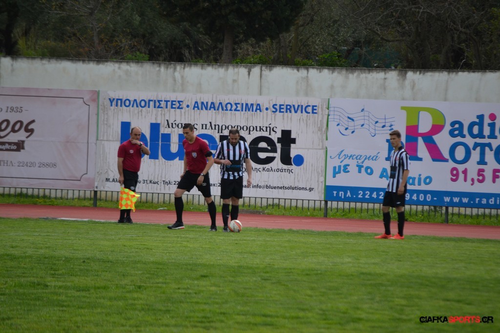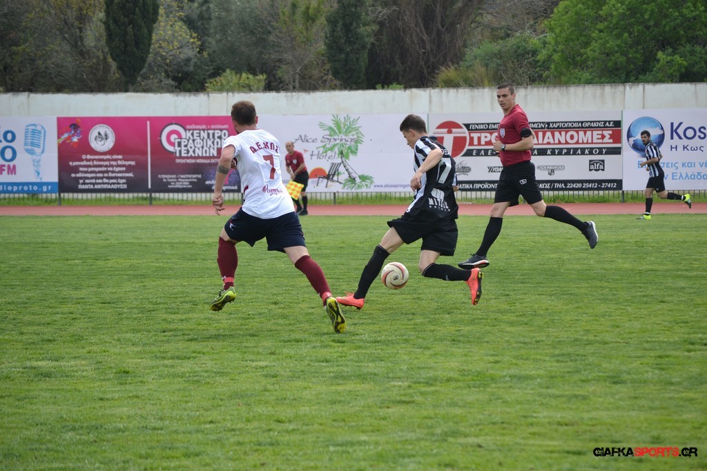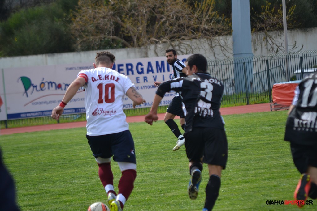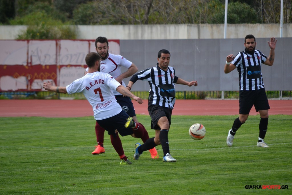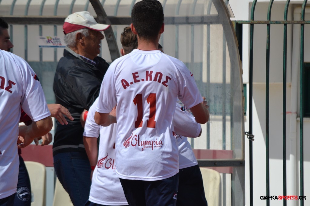 Με την έναρξη του δευτέρου μέρους η Α.Ε Κως που είχε κλείσει πολύ σωστά τους διαδρόμους, κατάφερε να σκοράρει στην κόντρα με τον Ηλιάδη στο 55′ να κάνει την παράλληλη πάσα και τον Κώστογλου να νικά τον Γιακούμαρο για το 1-0.