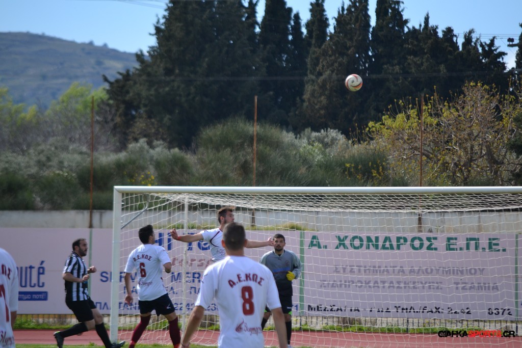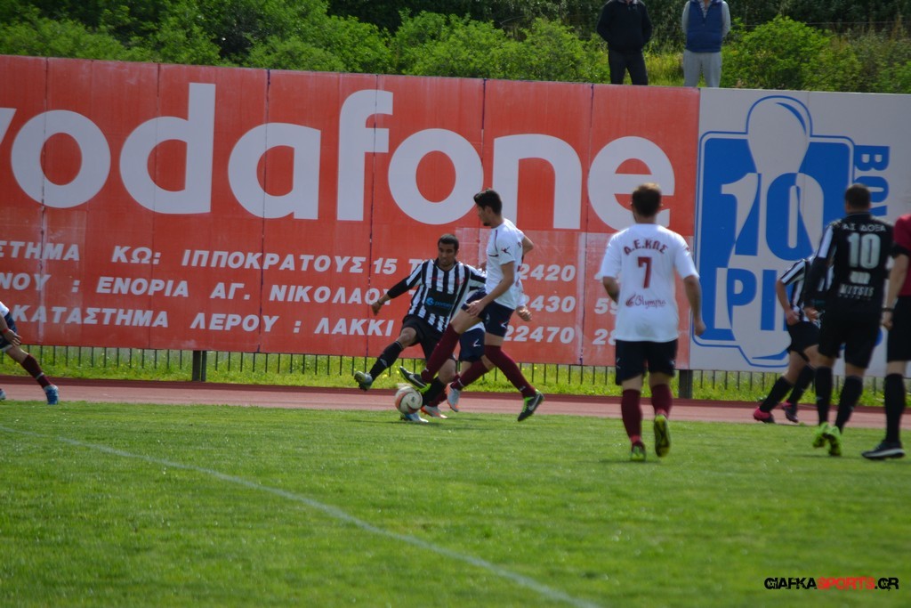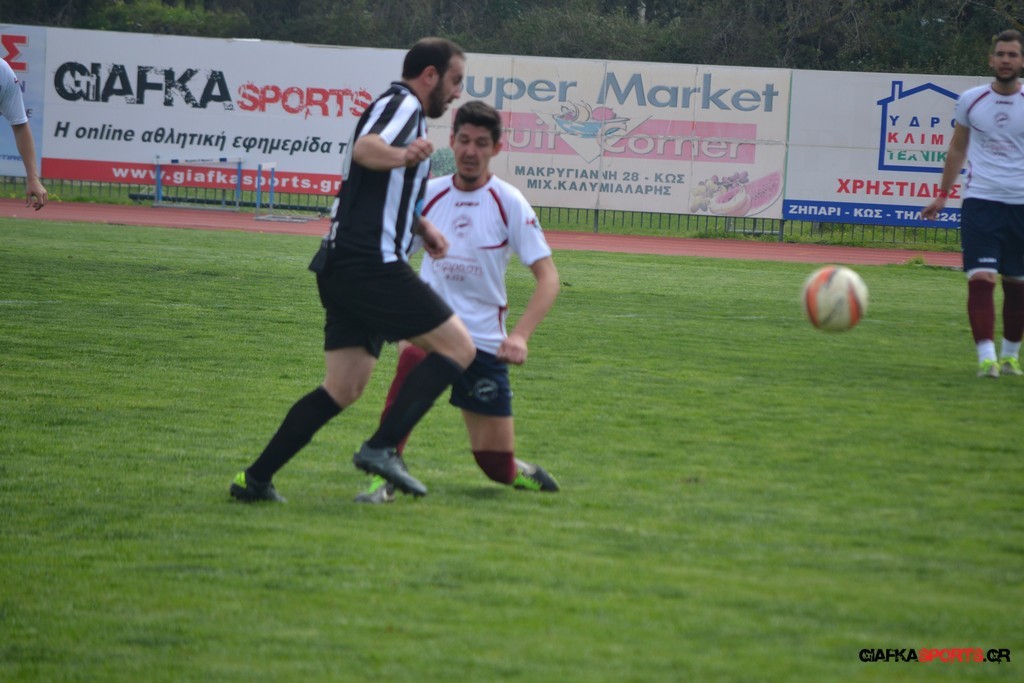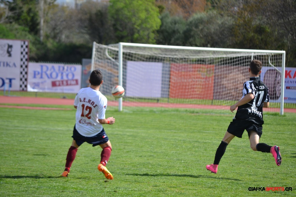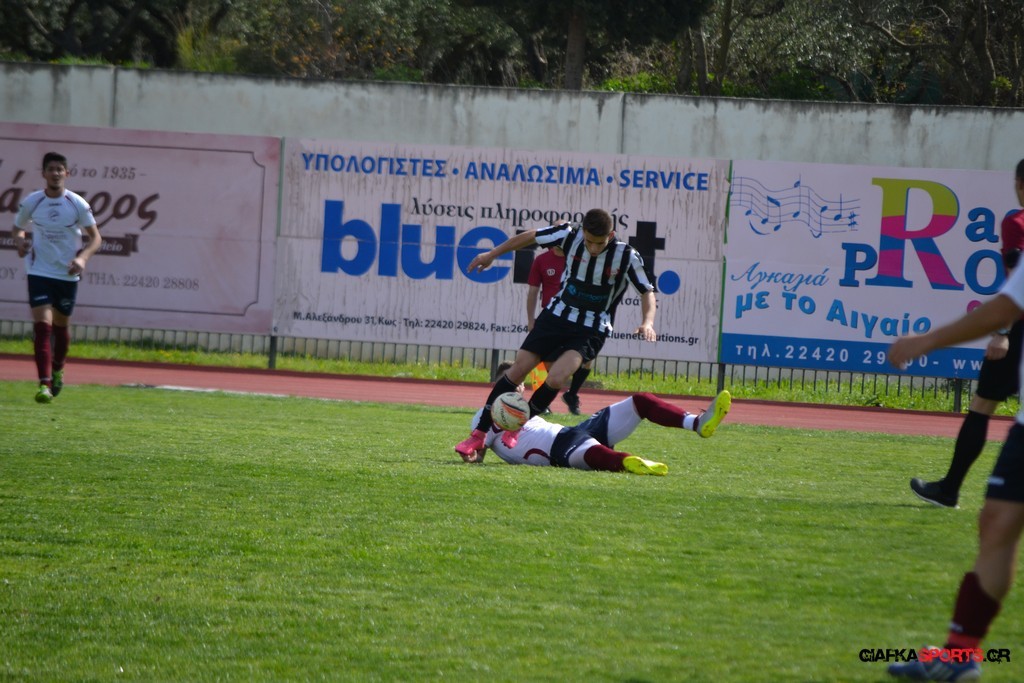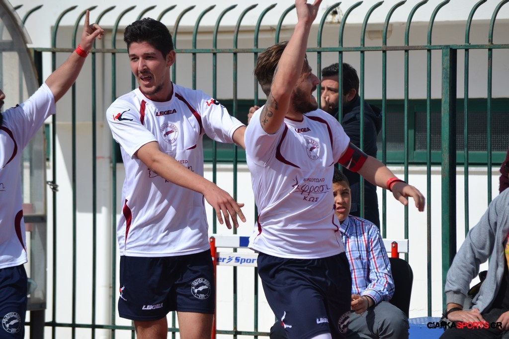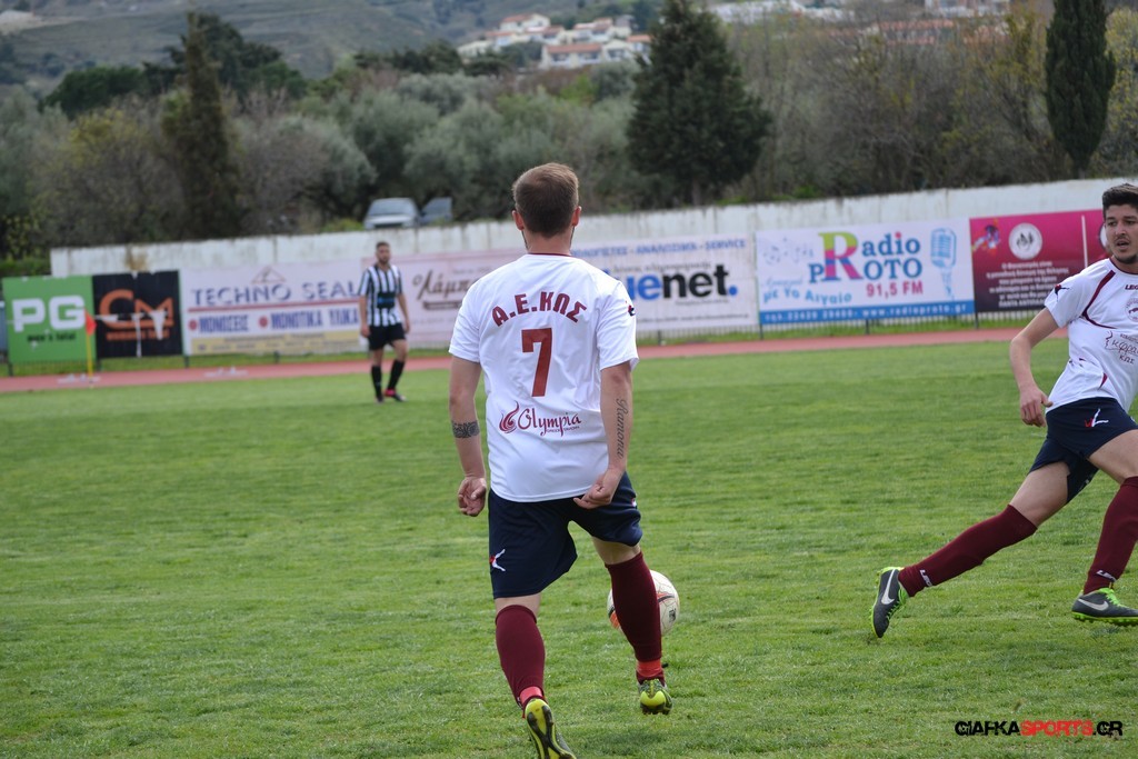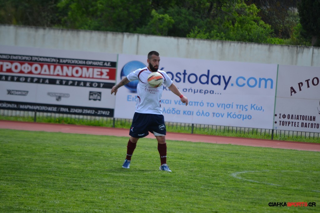 Με την έναρξη του δευτέρου μέρους η Α.Ε Κως που είχε κλείσει πολύ σωστά τους διαδρόμους, κατάφερε να σκοράρει στην κόντρα με τον Ηλιάδη στο 55′ να κάνει την παράλληλη πάσα και τον Κώστογλου να νικά τον Γιακούμαρο για το 1-0.