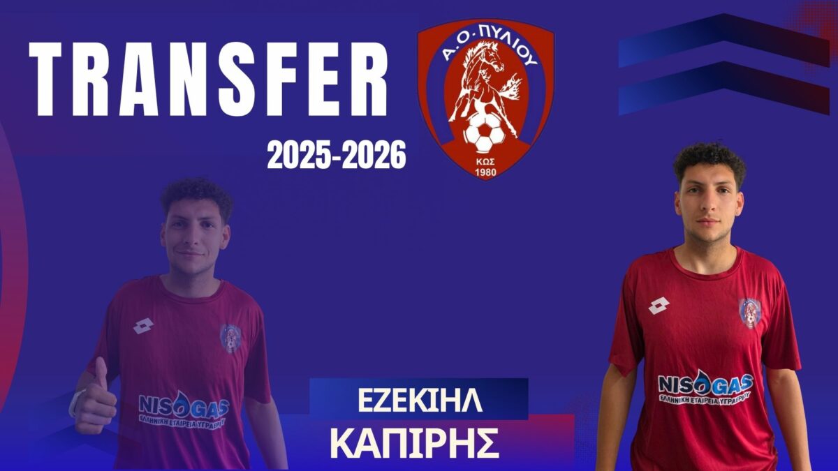 «Ο Α.Ο Πυλίου Κω ανακοινώνει την απόκτηση του Εζεκιήλ Καπίρη για την αγωνιστική περιόδο 2025-2026. Ο 22χρονος ποδοσφαιριστής επιστρέφει στο νησί μετά το πέρασμα του από Θύελλα Πατρών, Α.Ο Περιστερίου και ΠΑΟ Καματερού και χαιρόμαστε που θα είναι μέλος της οικογένειας μας. Τον καλωσορίζουμε και του ευχόμαστε μια γεμάτη σεζόν χωρίς τραυματισμούς».