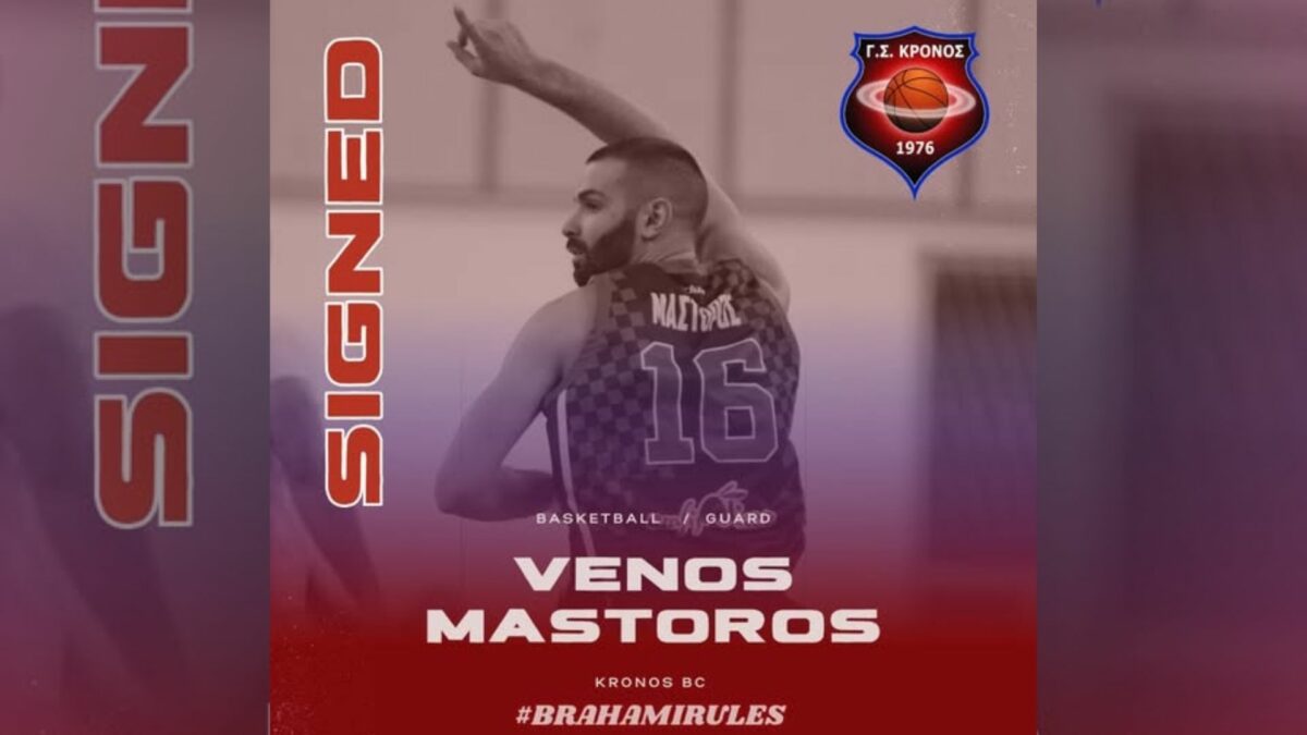 “Ο Κρόνος Αγίου Δημητρίου είναι στην ευχάριστη θέση να ανακοινώσει την έναρξη της συνεργασίας του με τον Βένο Μαστόρο (26χρ., 1.93μ.), ο οποίος έρχεται να δώσει ακόμα περισσότερο βάθος και δυναμική στην περιφέρεια της ομάδας μας.