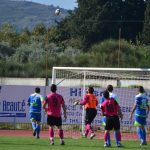 59′ Εκτέλεση κόρνερ από τον Καπουράνη, ο Τσιμιτσέλης έπιασε την κεφαλιά με τον Αμοργίνο να αποκρούει σε κόρνερ.
