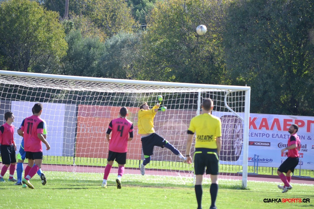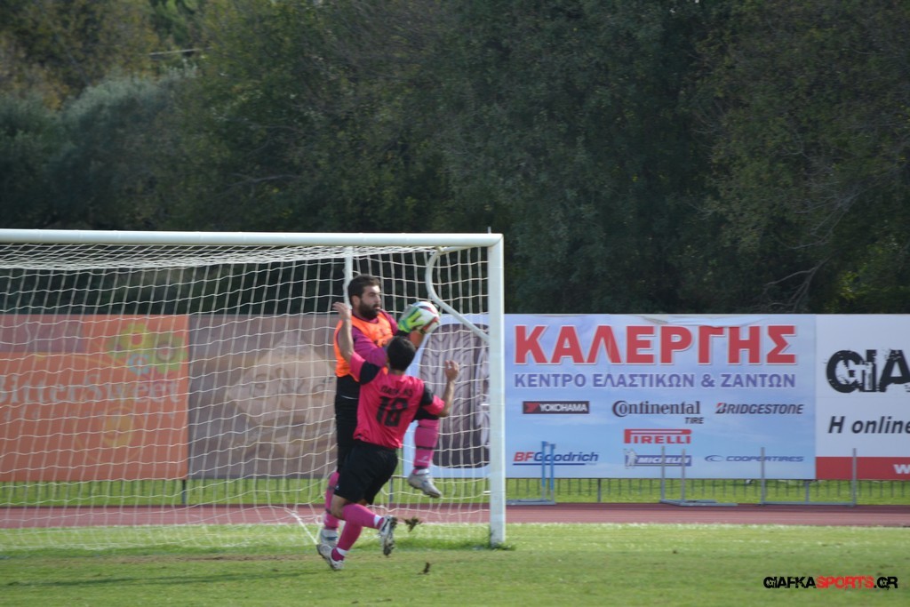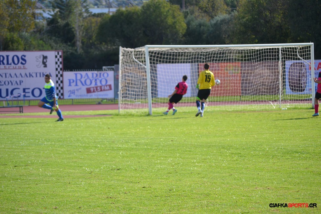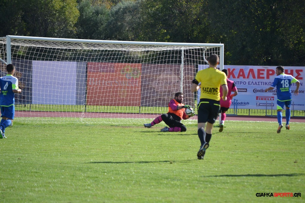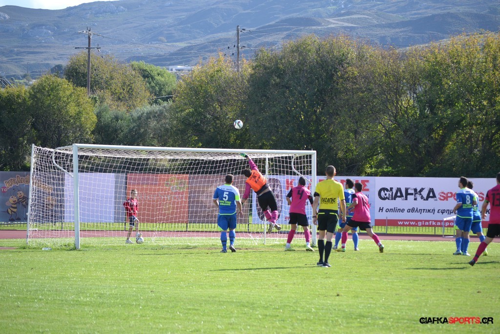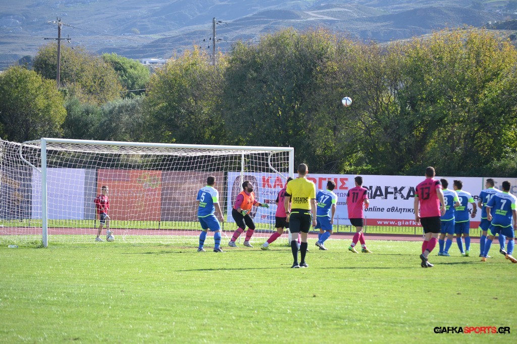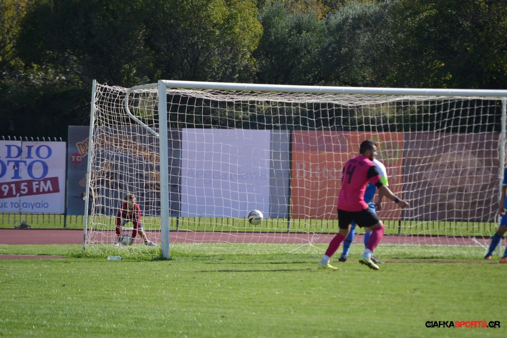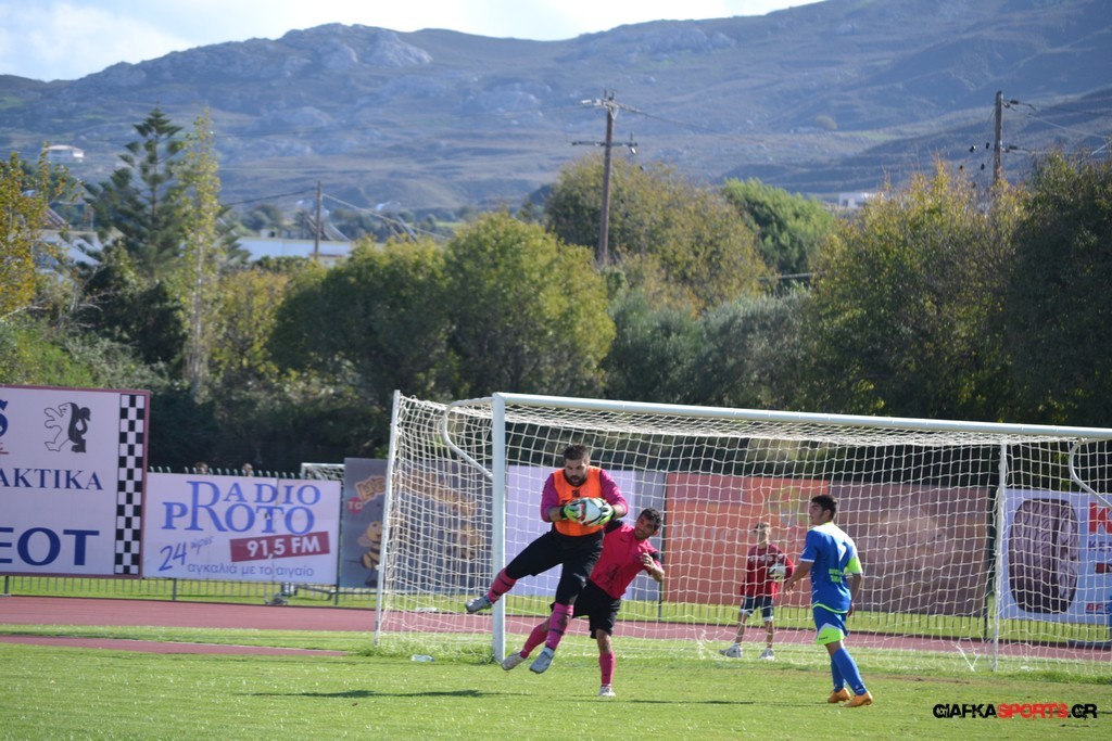 27′ Απευθείας εκτέλεση φάουλ από τον Καλέργη, απόκρουσε στην αριστερή του γωνία σε κόρνερ ο Αμοργίνος.
