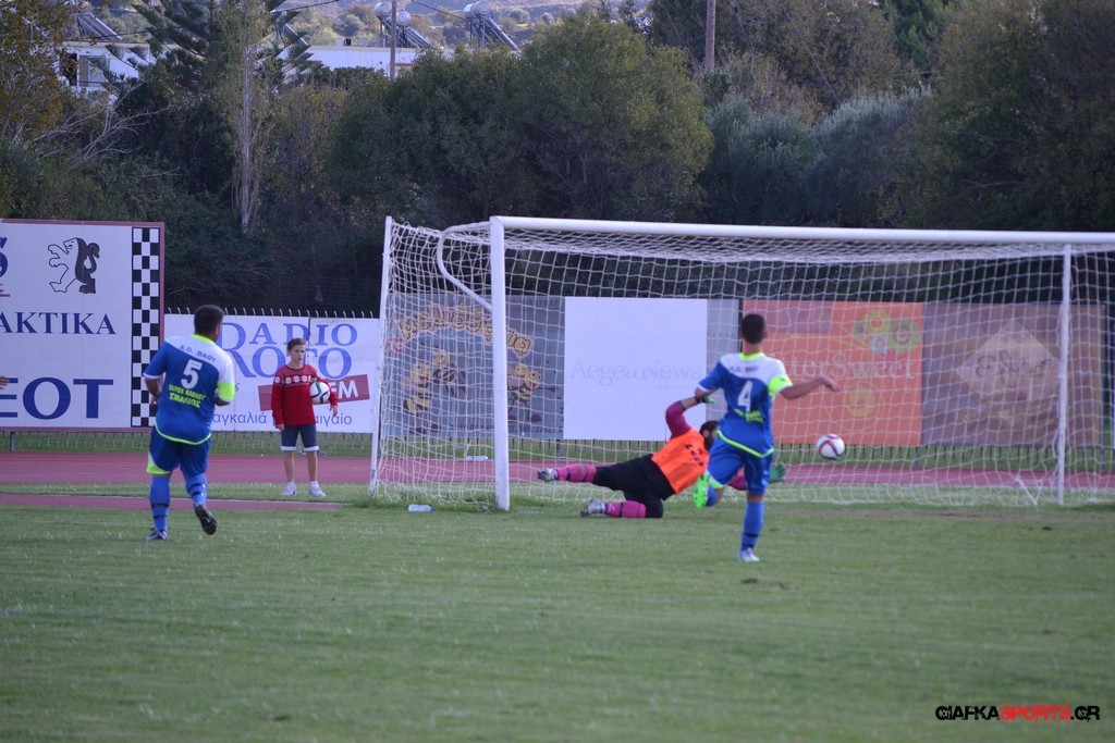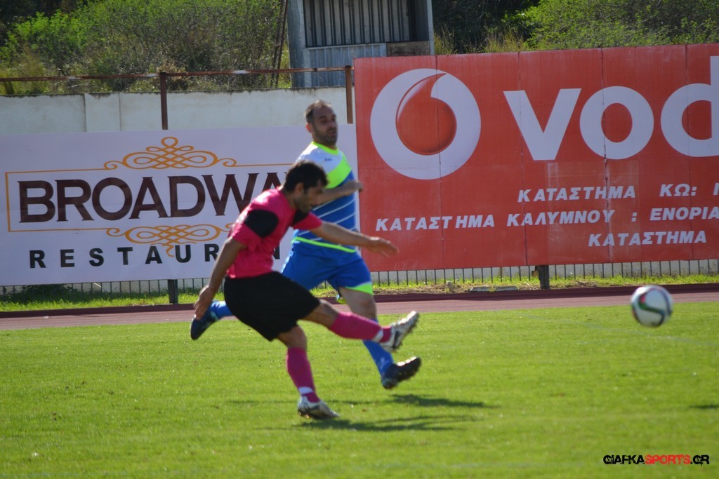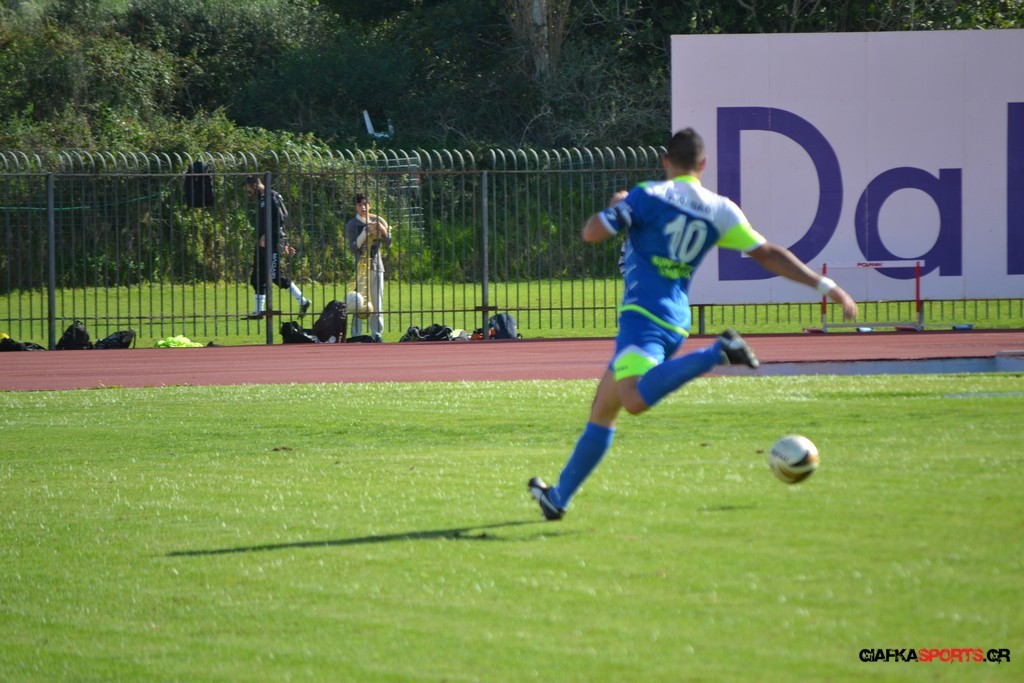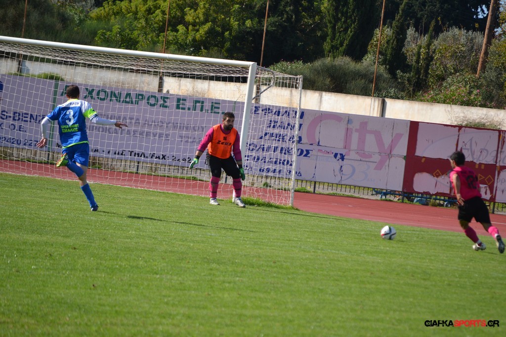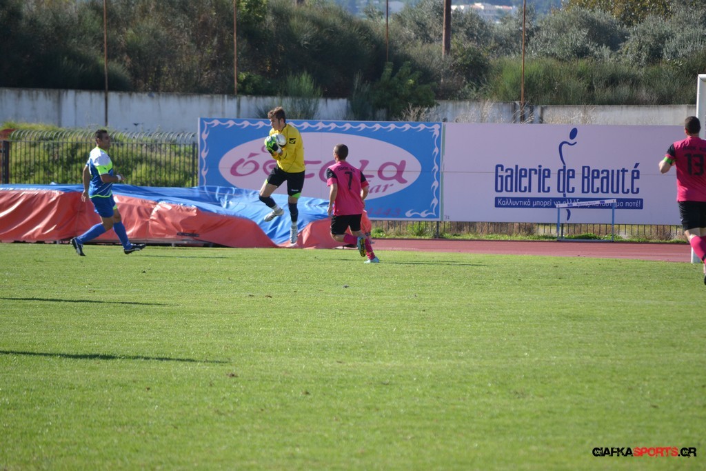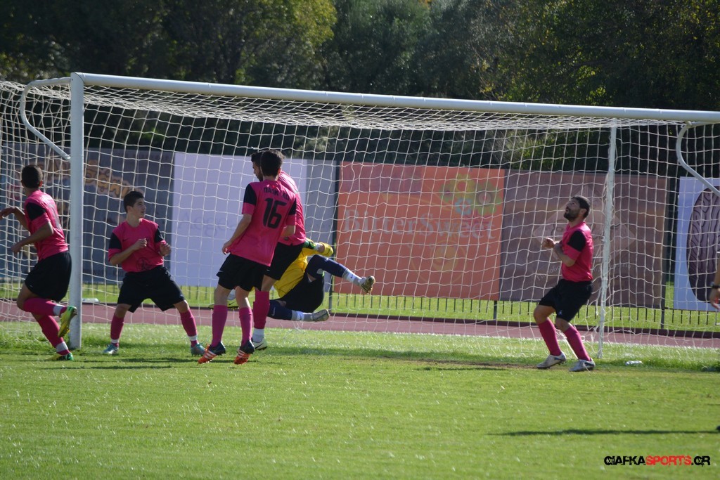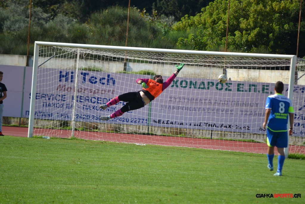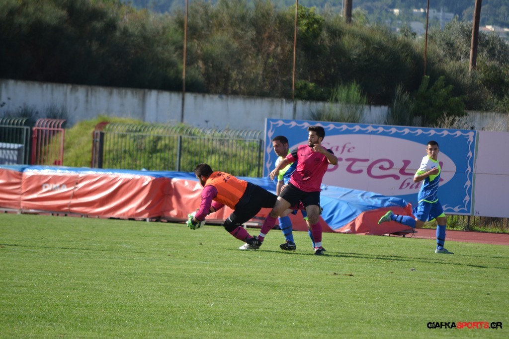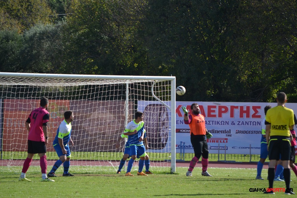 27′ Απευθείας εκτέλεση φάουλ από τον Καλέργη, απόκρουσε στην αριστερή του γωνία σε κόρνερ ο Αμοργίνος.