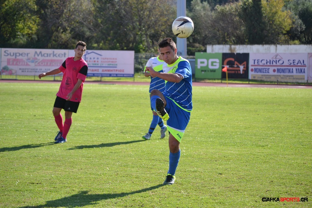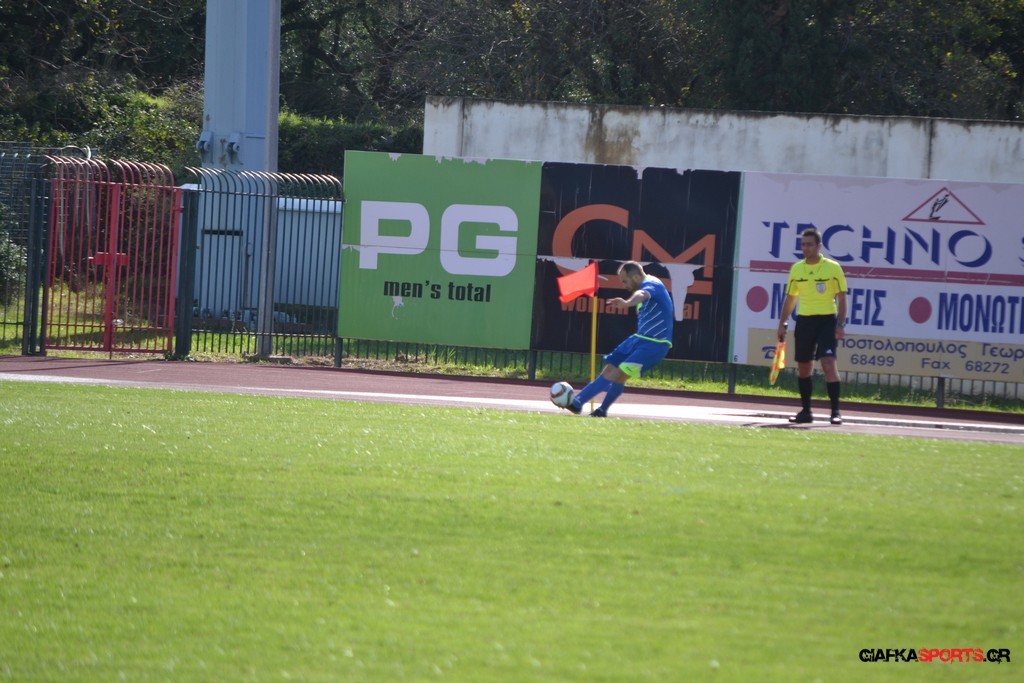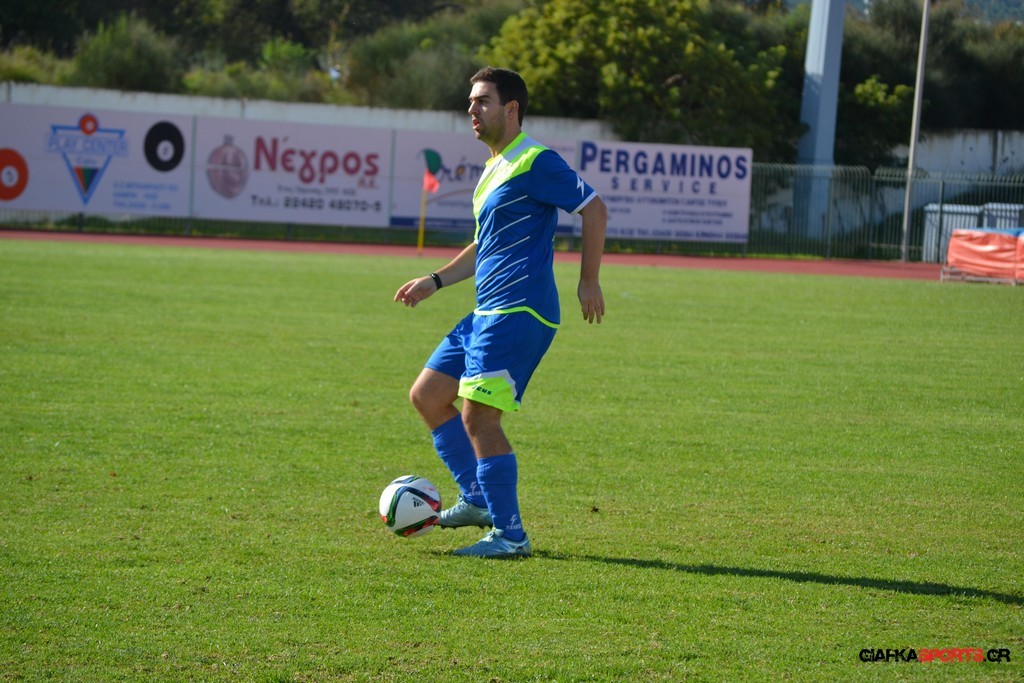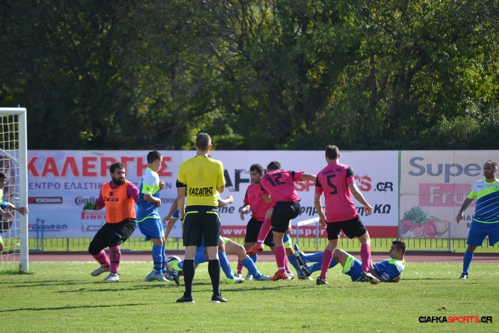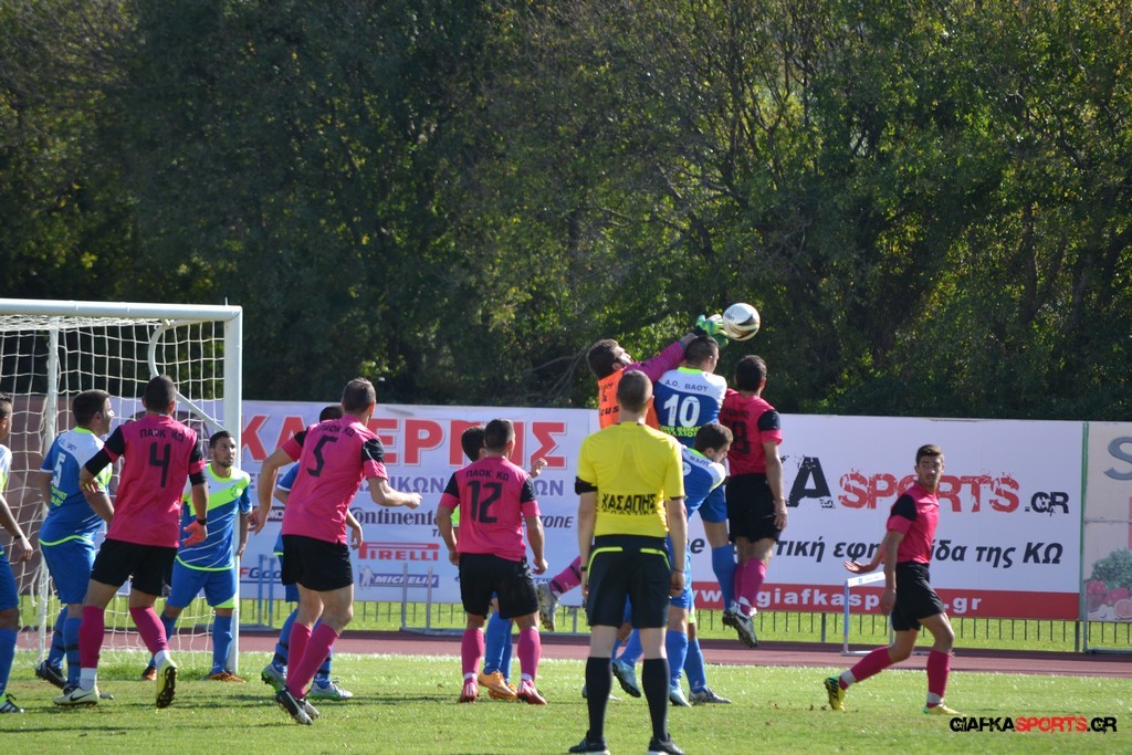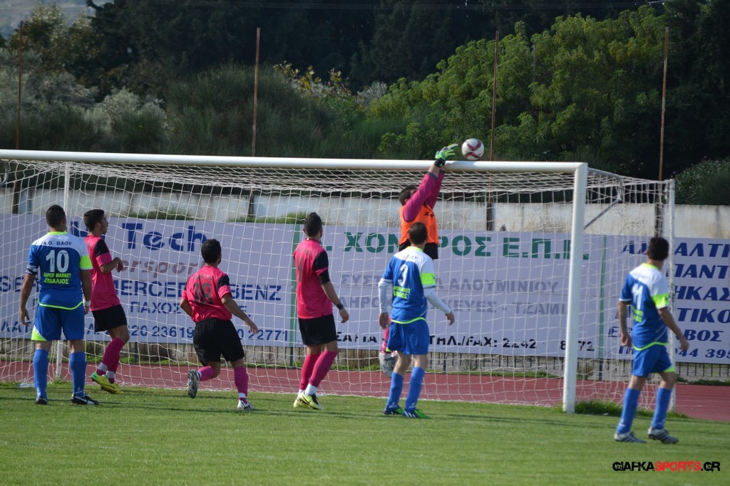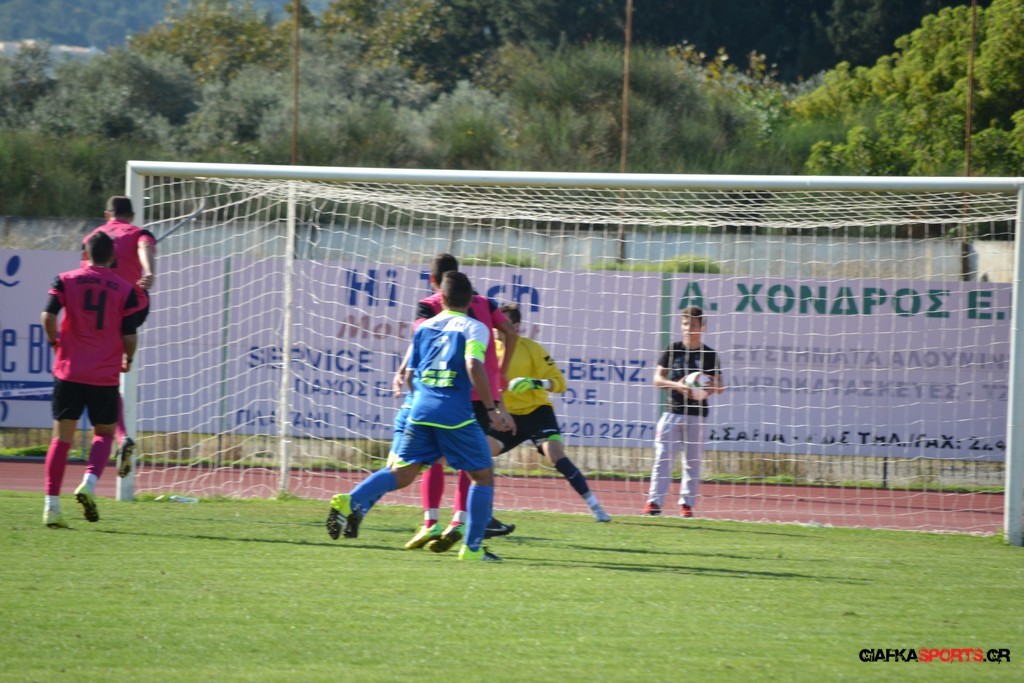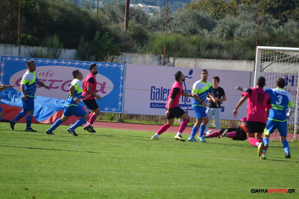 27′ Απευθείας εκτέλεση φάουλ από τον Καλέργη, απόκρουσε στην αριστερή του γωνία σε κόρνερ ο Αμοργίνος.