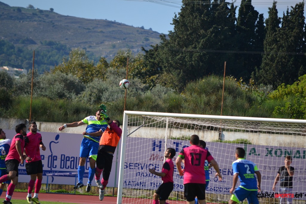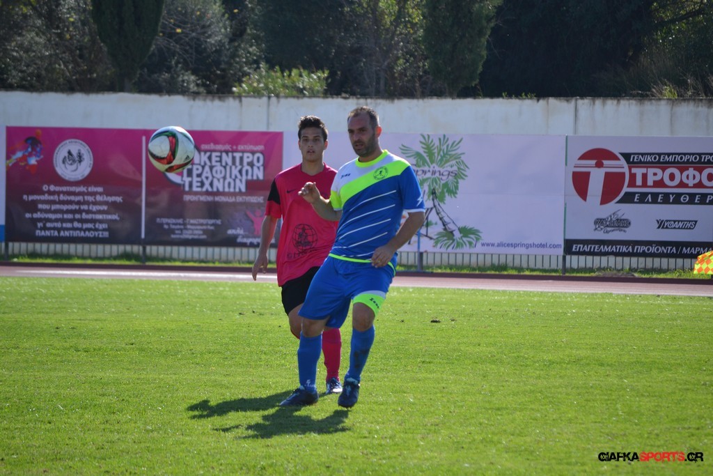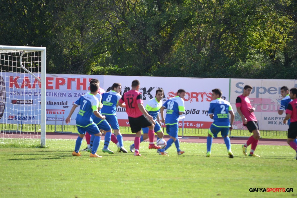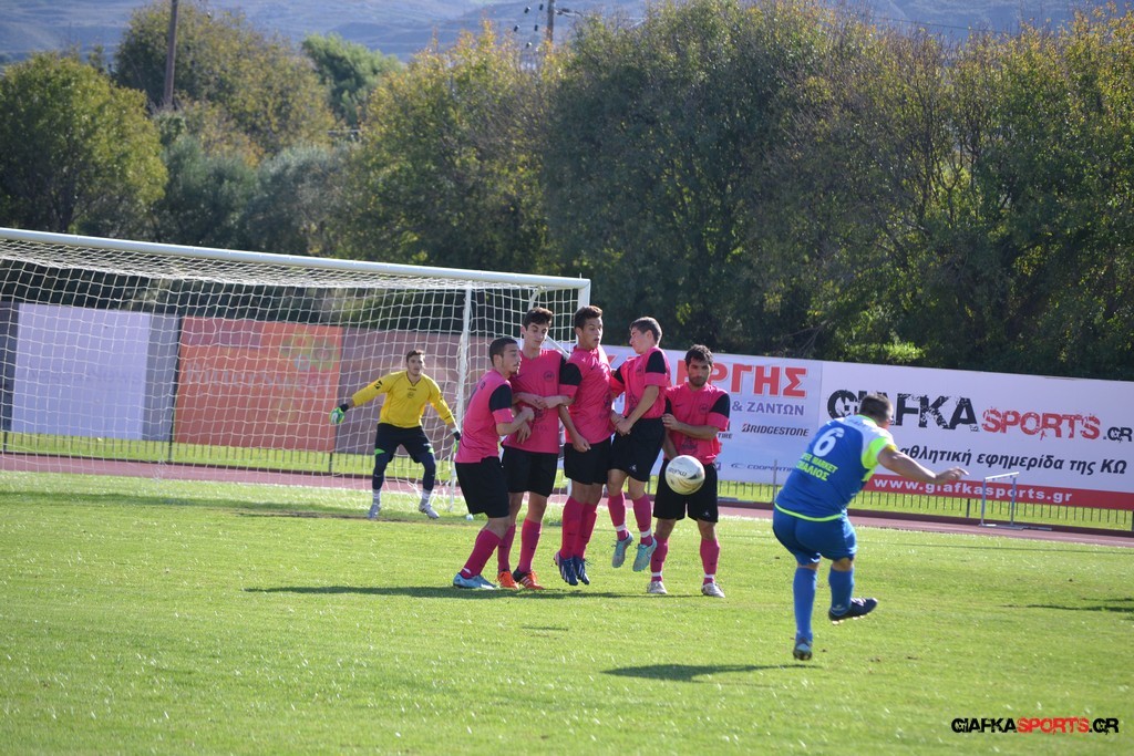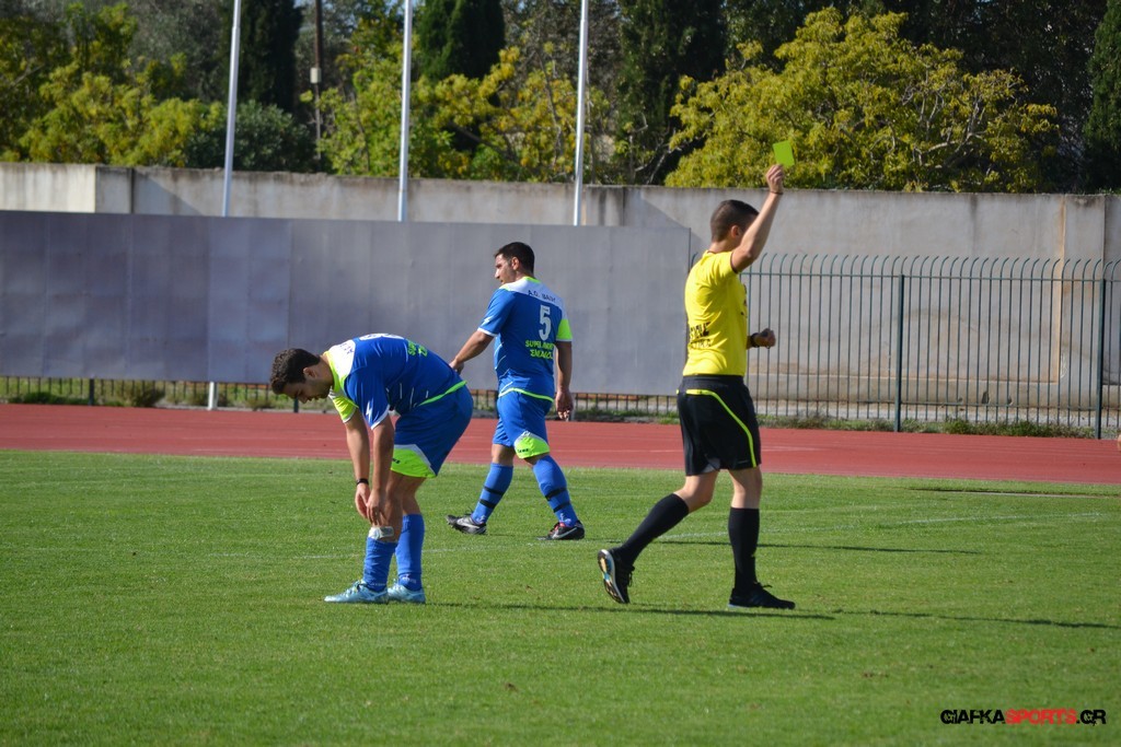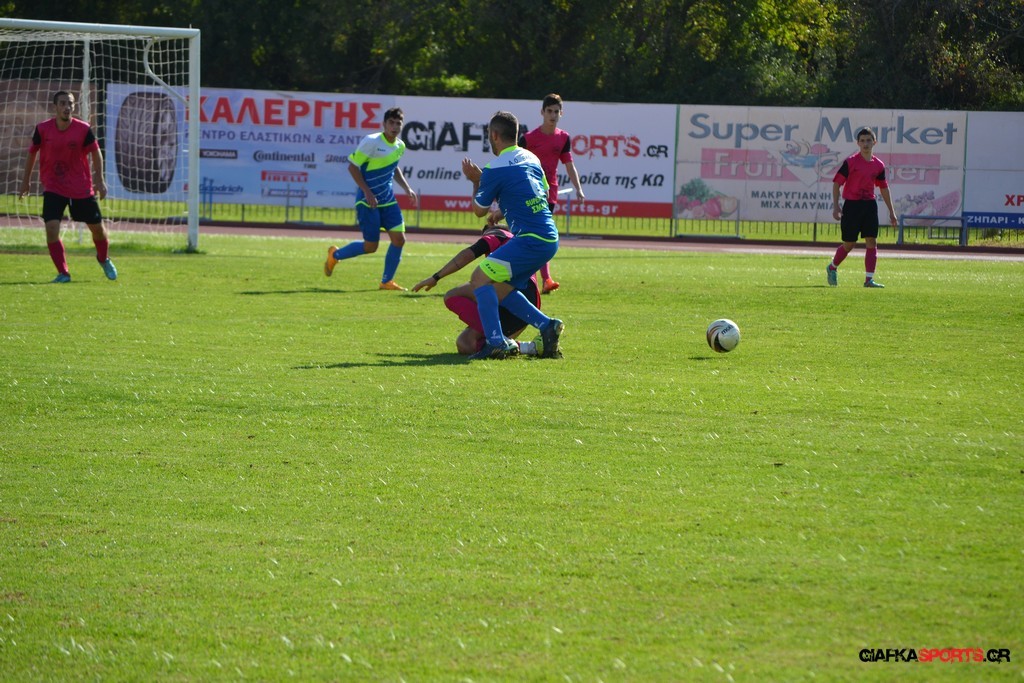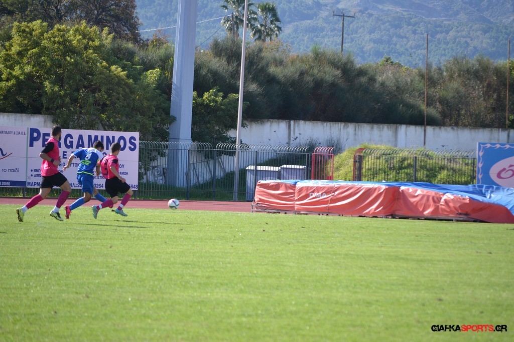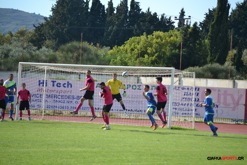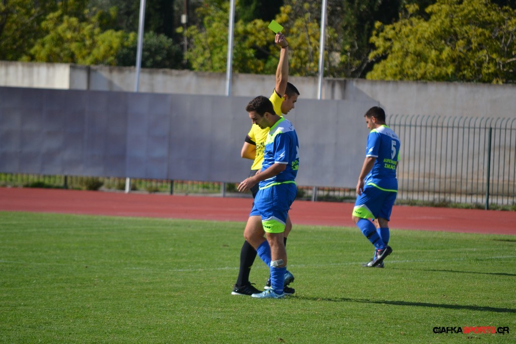 27′ Απευθείας εκτέλεση φάουλ από τον Καλέργη, απόκρουσε στην αριστερή του γωνία σε κόρνερ ο Αμοργίνος.