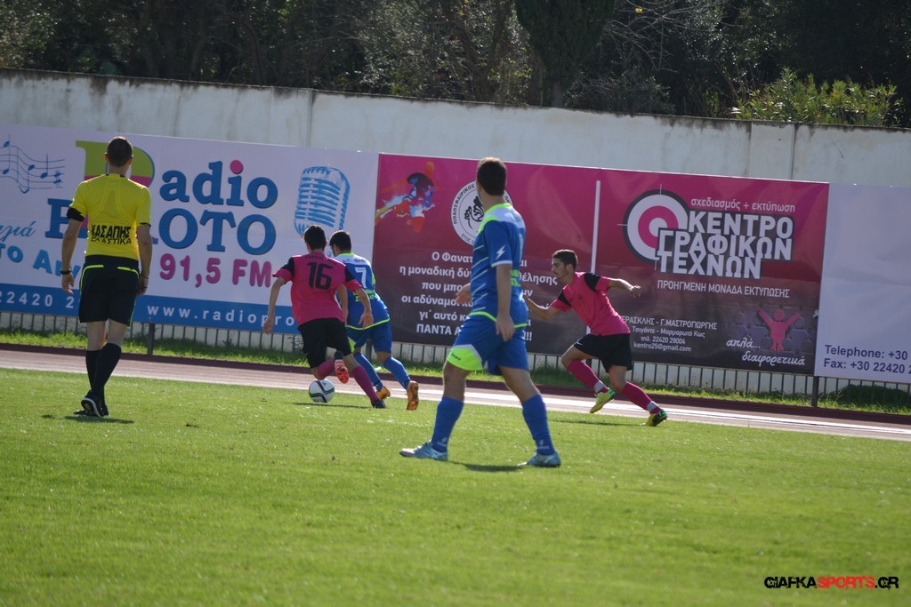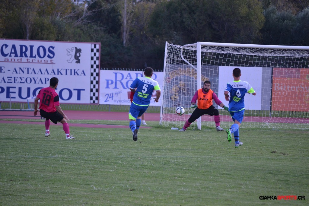 58′ Ο Ευσταθιάδης μπήκε στην περιοχή του Α.Ο Βαθύ έκανε το σουτ με τον Αμοργίνο να αποκρούει με τα πόδια σε κόρνερ.