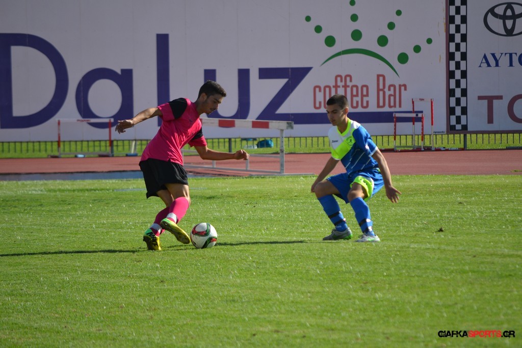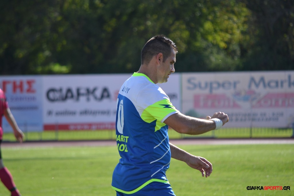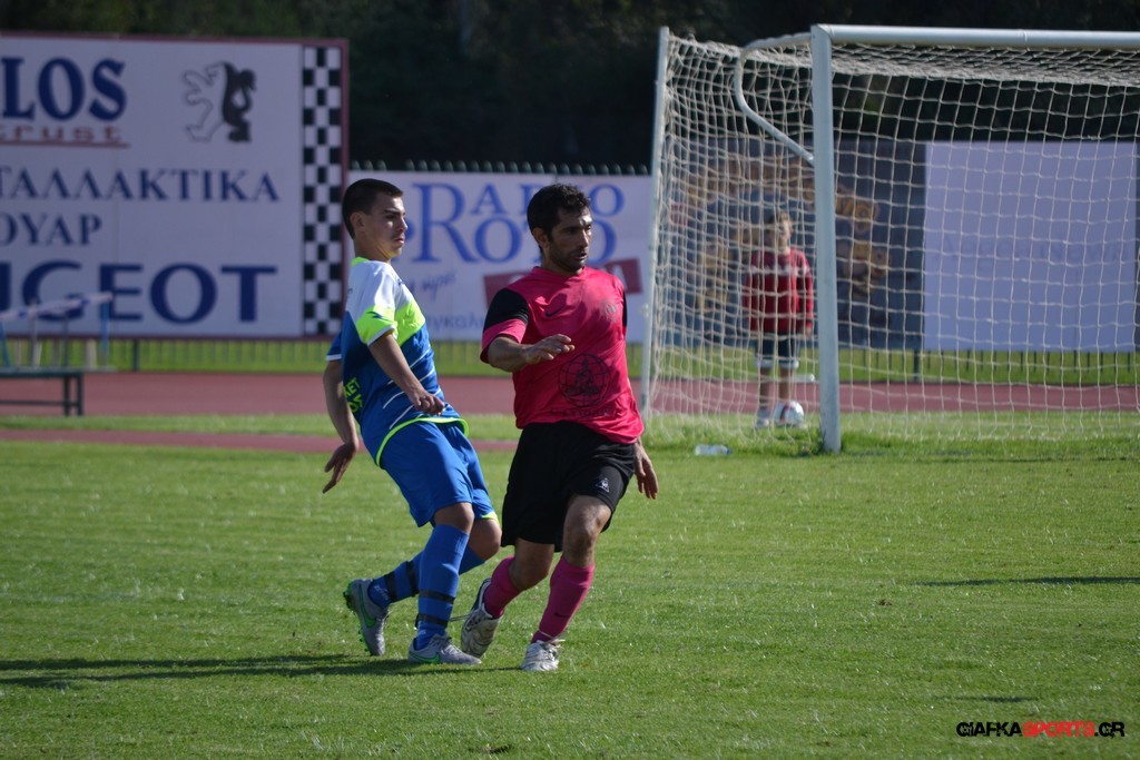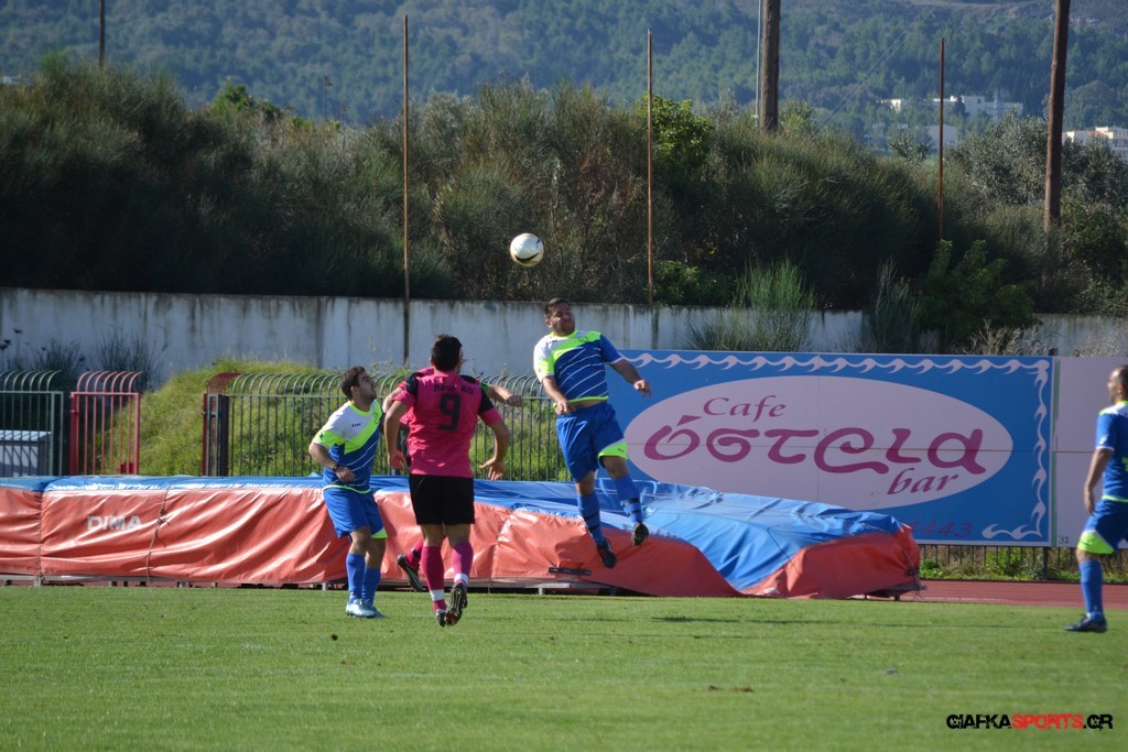 2′ Εκτέλεση φάουλ από τον Καλέργη, ο Στεργαλλάς έκανε την κεφαλιά πάσα στον Ευσταθιάδη με την κεφαλιά του τελευταίου να περνάει άουτ.