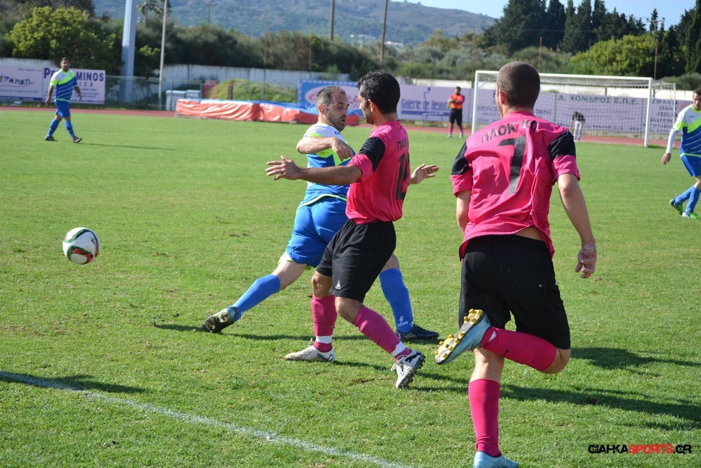 Ο ΠΑΟΚ Κω απείλησε για πρώτη φορά στο 27′ ,αλλά ο Αμοργίνος κατάφερε να απεκρούσει την απευθείας εκτέλεση φάουλ του Καλέργη.