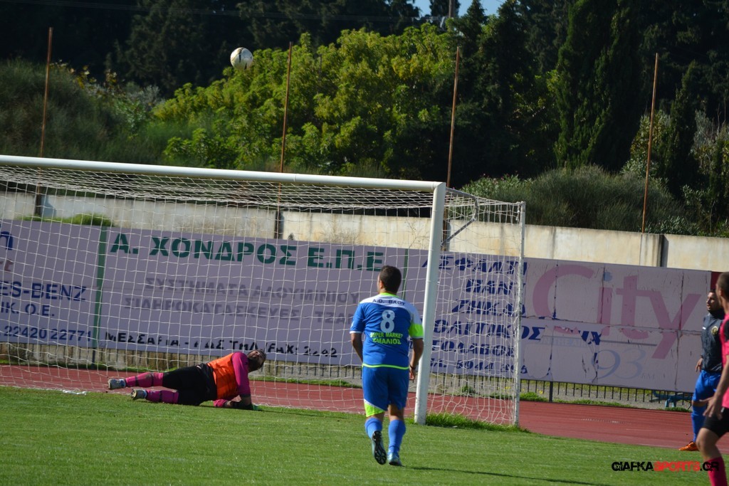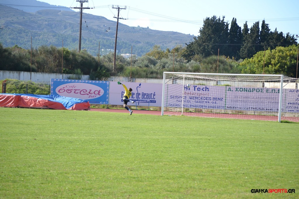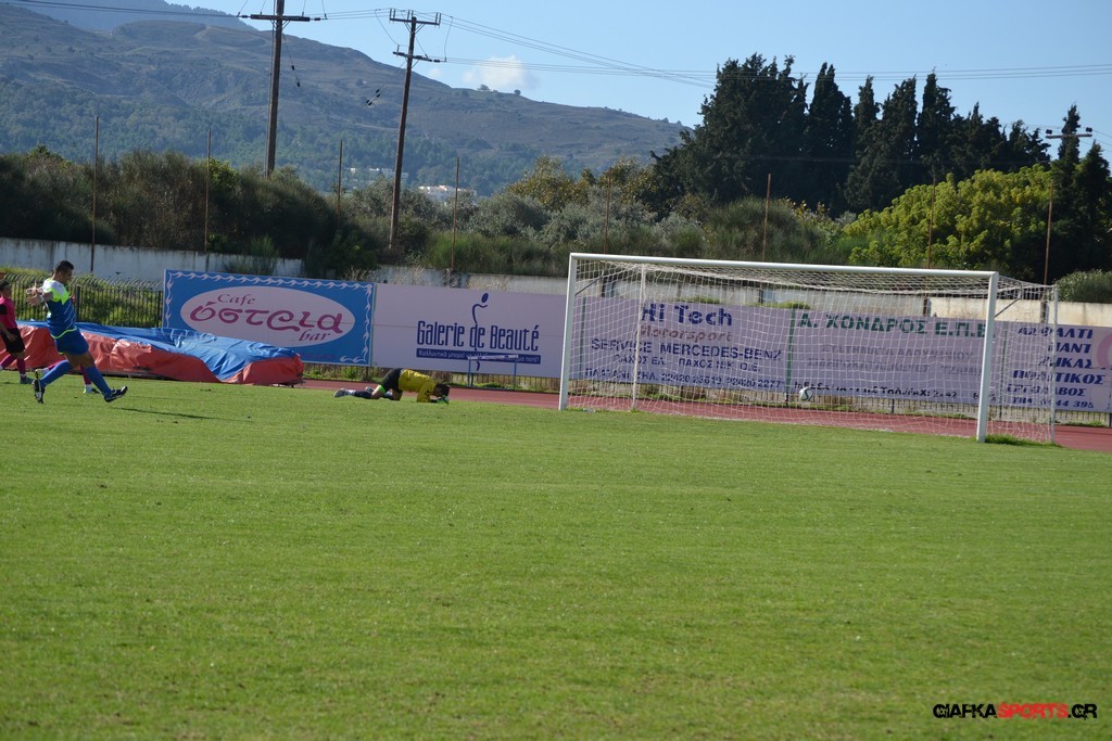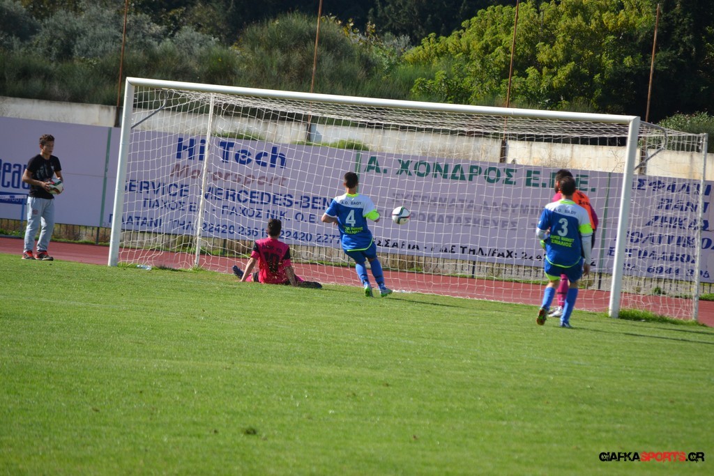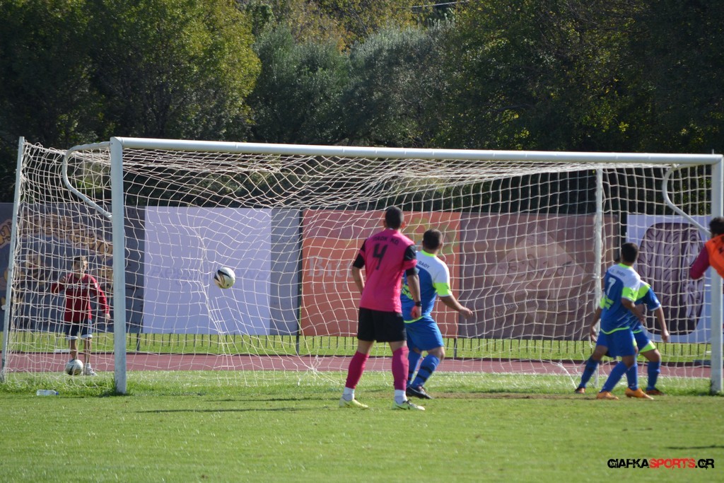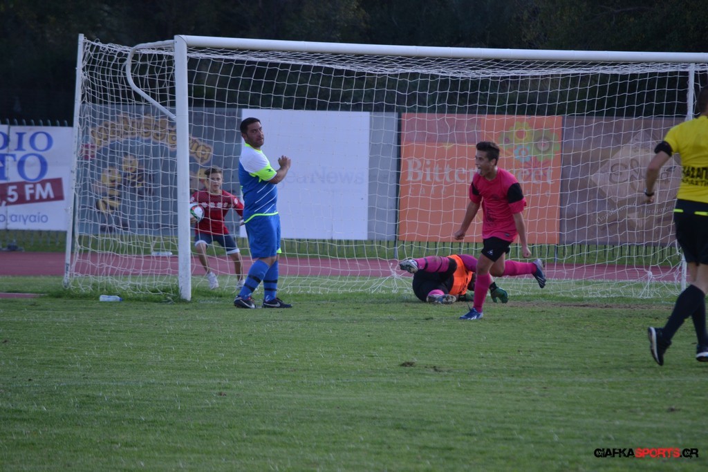 43′ Ο Καπουράνης εκτέλεσε το φάουλ, η μπάλα από τις κόντρες κατέληξε στον Ξυπολιτά Μ. το σουτ του οποίου απόκρουσε εντυπωσιακά στην δεξιά του γωνία ο Αμοργίνος.