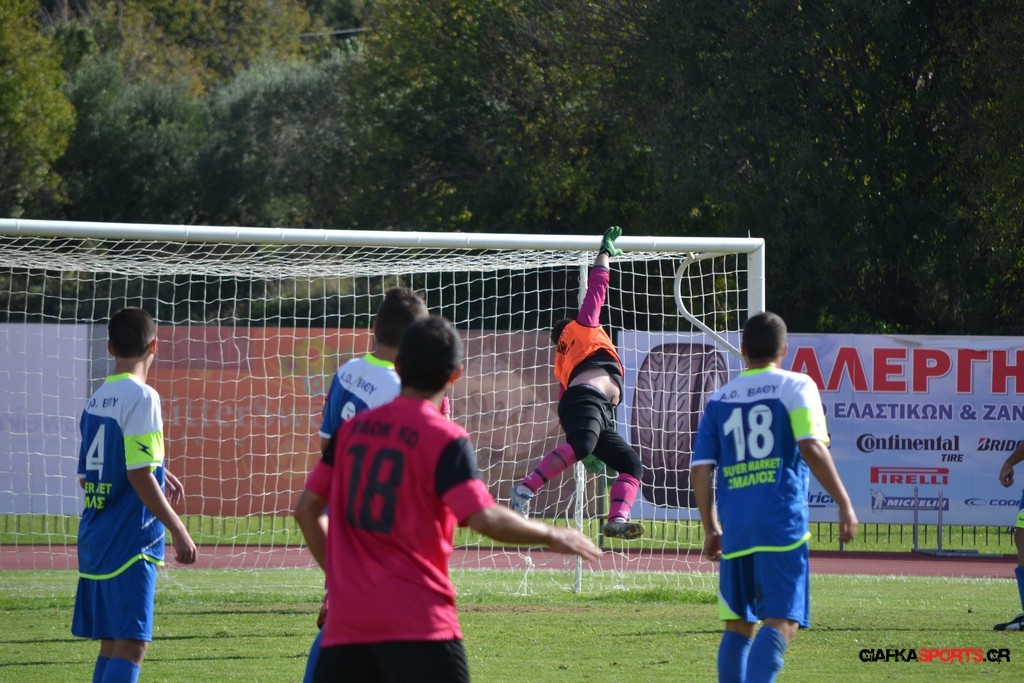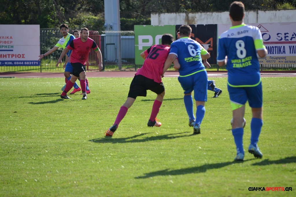 18′ Ωραία αντεπίθεση για το Α.Ο Βαθύ με το σουτ του Καμπουράκη Α. έξω από την περιοχή με την μπάλα να περνάει άουτ.