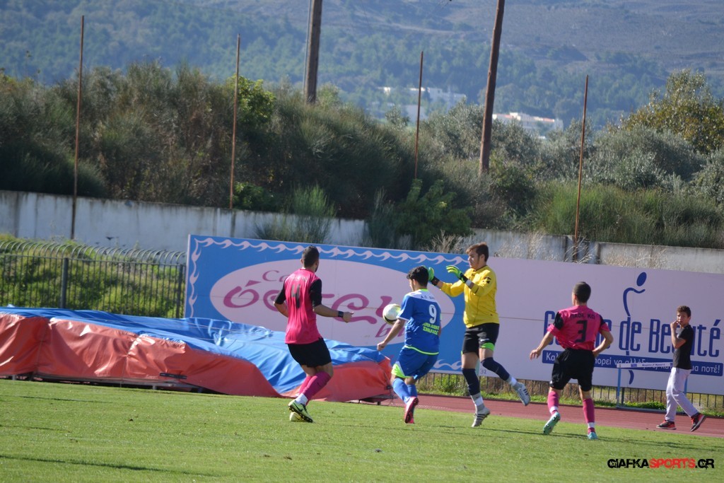 16′ Εκτέλεση κόρνερ από τον Ανθούλη, ο Σαγρές έπιασε την κεφαλιά με την μπάλα να περνάει άουτ.