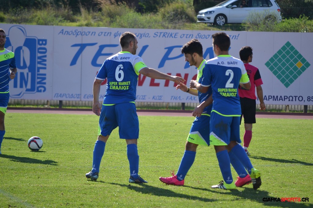 Ο ΠΑΟΚ Κω νίκησε τον Α.Ο Βαθύ με 4-2 στην «ματσάρα» που έγινε σήμερα στο ”Νέο Στάδιο Ανταγόρα” για την 4η αγωνιστική της Β’ κατηγορίας του Ομίλου νήσων πραγματοποιώντας μια πολύ καλή εμφάνιση ειδικά στο δεύτερο ημίχρονο αναγκάζοντας και τον Α.Ο Βαθύ στην πρώτη του φετινή ήττα.