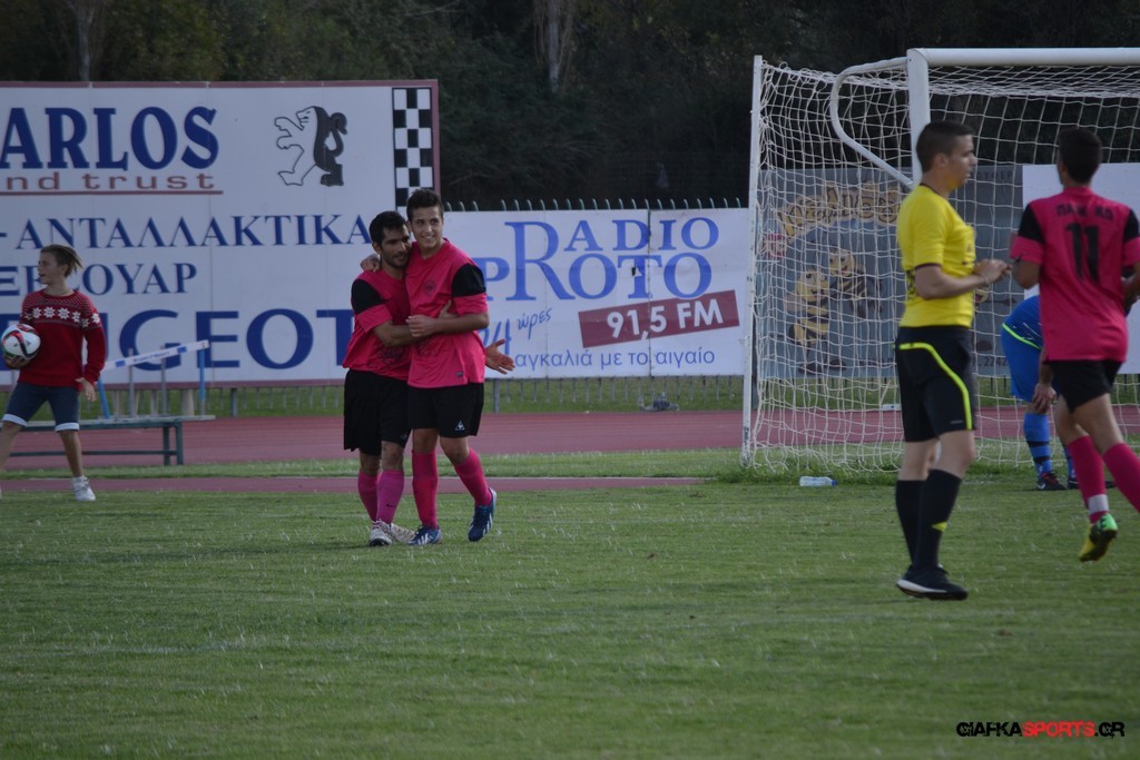 65′ ΓΚΟΛ!! Εκτέλεση κόρνερ από τον Καπουράνη, η μπάλα από τις κόντρες κατέληξε στον Ευσταθιάδη το δυνατό σουτ του οποίου κατέληξε στα δίχτυα του Αμοργίνου για το 2-2.