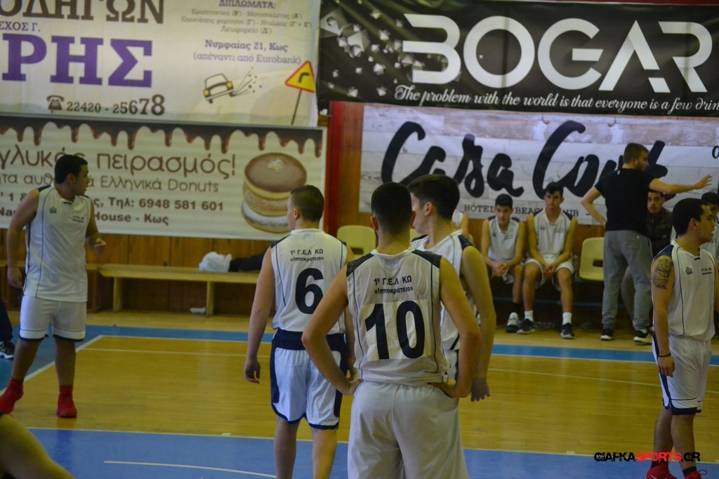 Το 1ο Ιπποκράτειο Λύκειο Κω προκρίθηκε στον τελικό μπάσκετ αγοριών μιας και επικράτησε του 2ου Γενικού Λυκείου Κω με 45-49.
