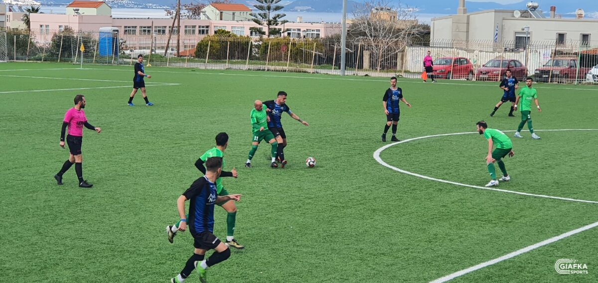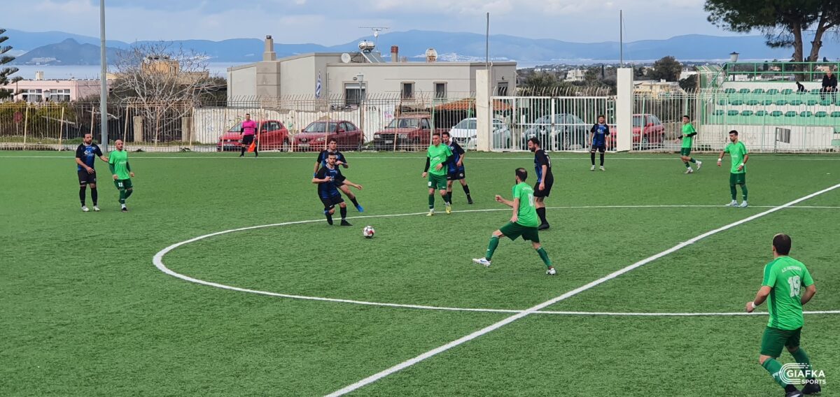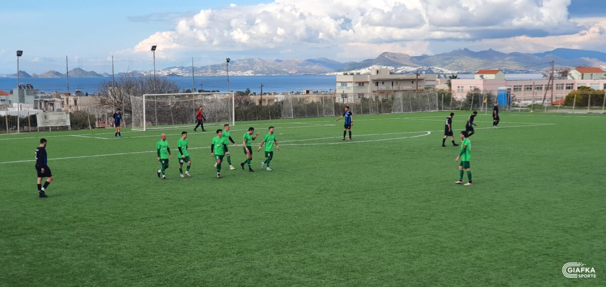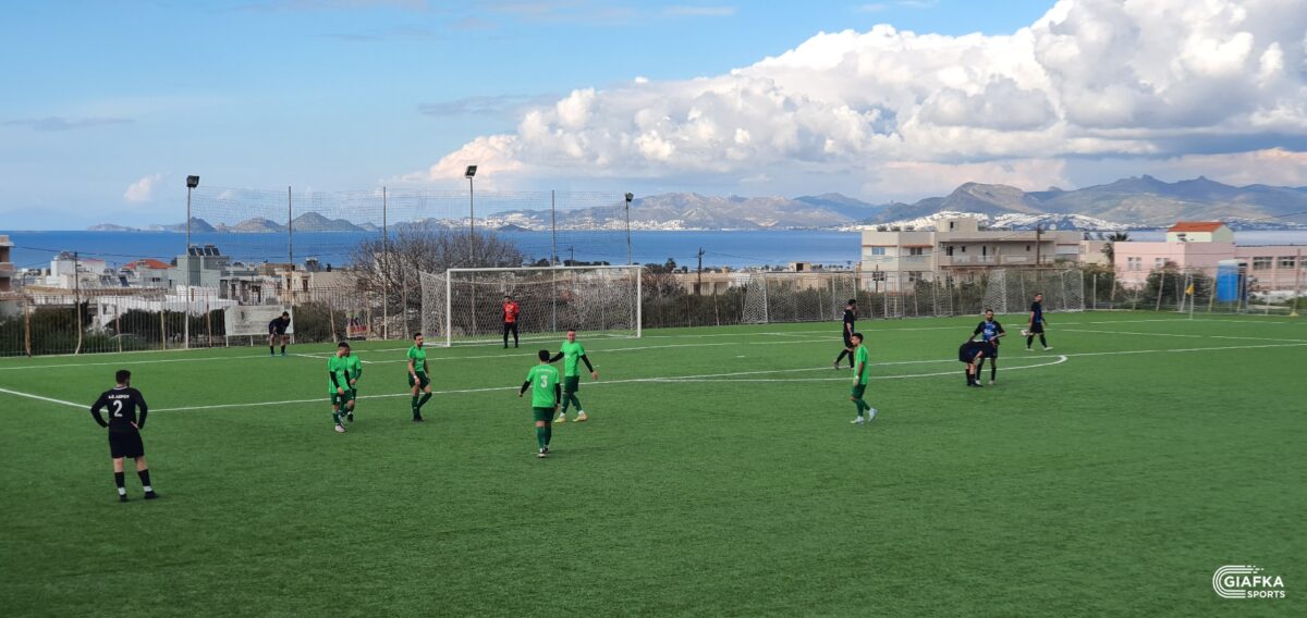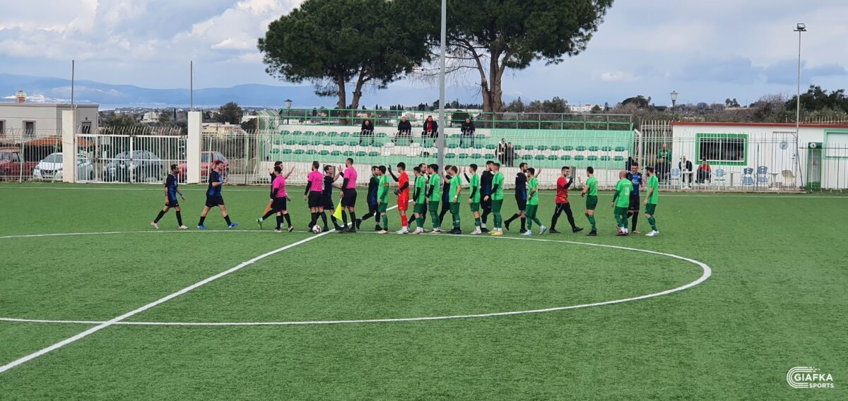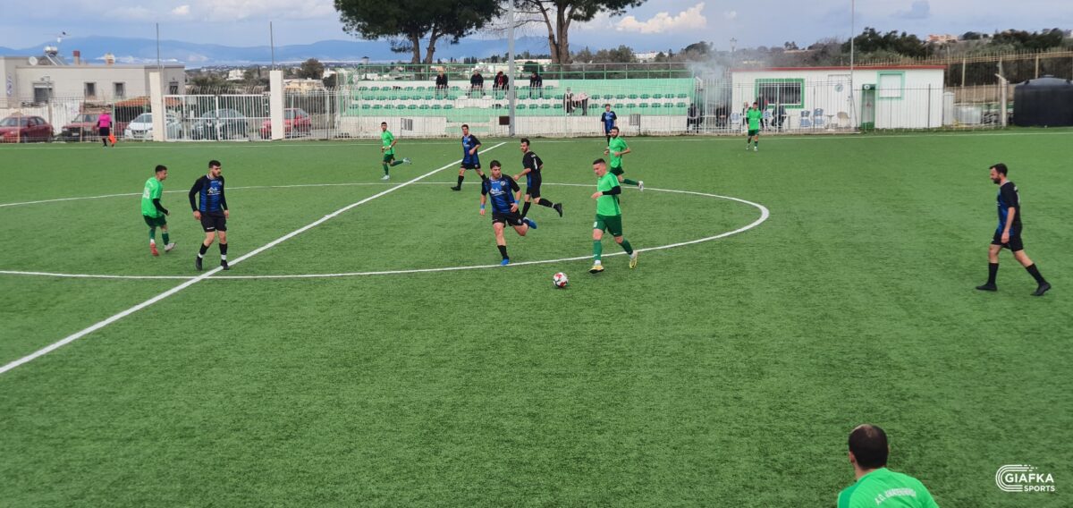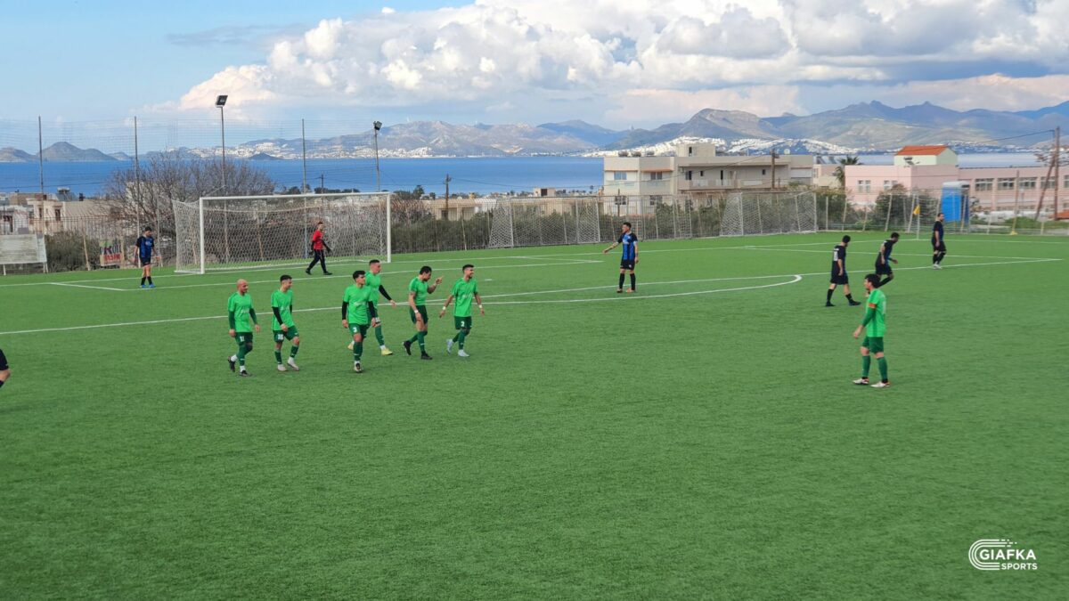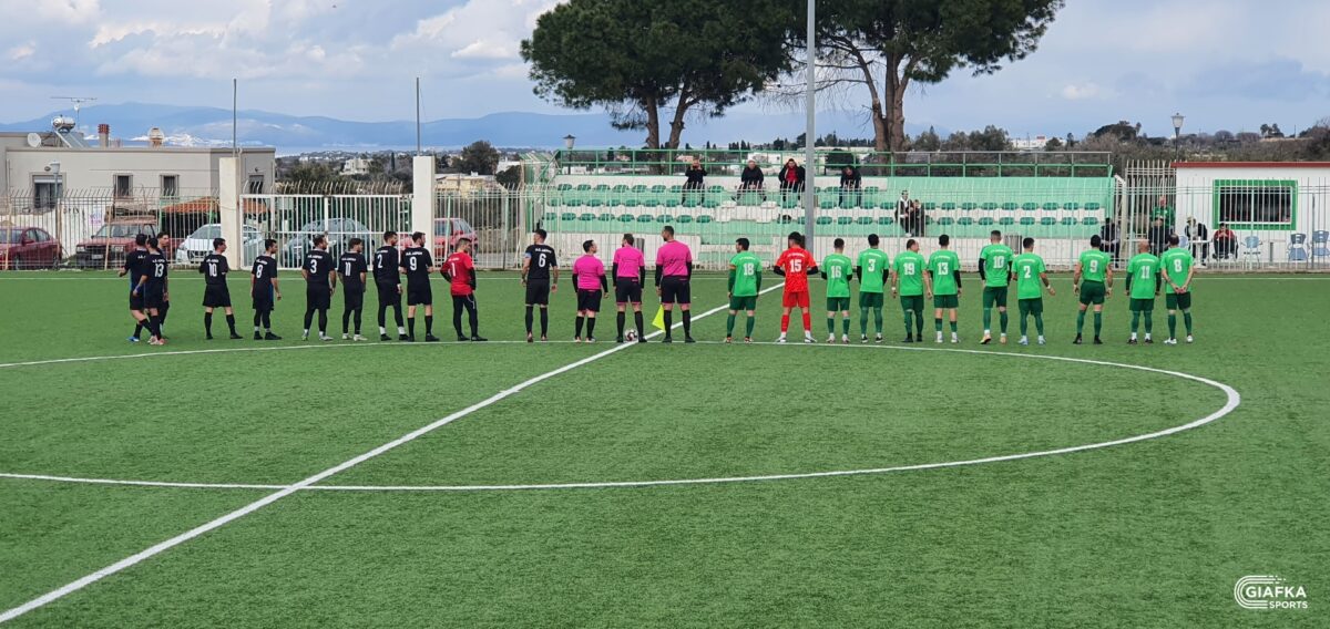 Οι «πράσινοι» πήραν προβάδισμα στο σκορ με τον Κόκκαλη στο 3′ ενώ στο 23′ ο Καματερός αφού πέρασε και τον Γιάνναρο σημείωσε το 2-0 για να ανεβάσει τον δείκτη του σκορ και πάλι ο Κόκκαλης στο 30′ και να γράψει το 4-0 του ημιχρόνου ο Μαυρίδης.