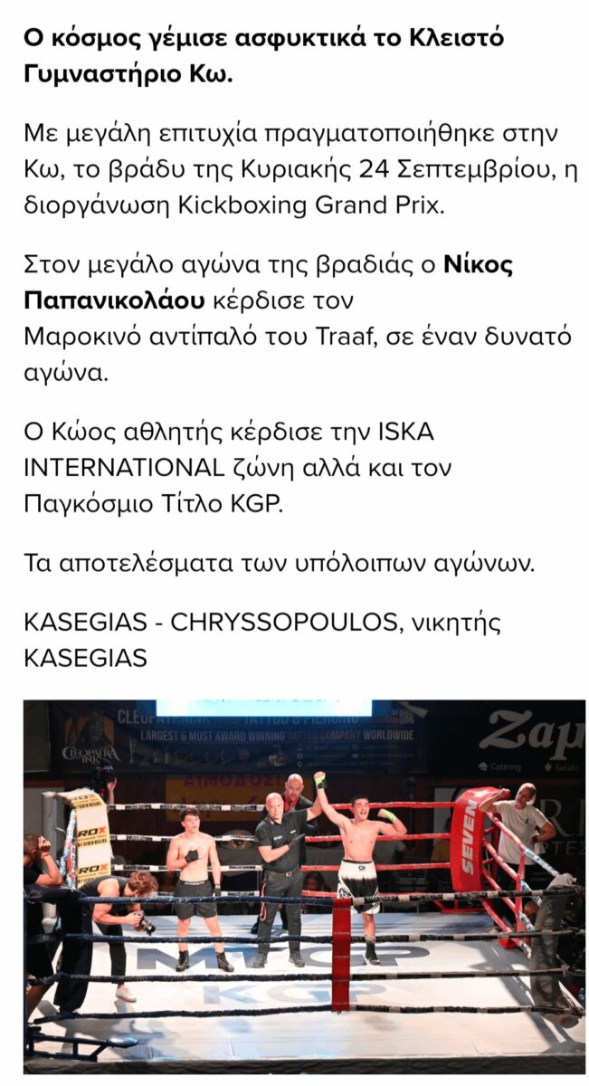 Συγκλονιστικός για ακόμη μια φορά ο Νίκος Παπανικολάου που νίκησε τον Μαροκινό αντίπαλο του στο KGP στην Κω