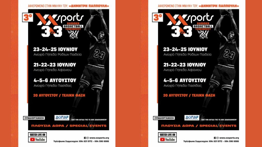 Home » Συνεχίζονται οι δηλώσεις συμμετοχών για το 3ο XXSPORTS 3on3 Summer Basketball Tournament