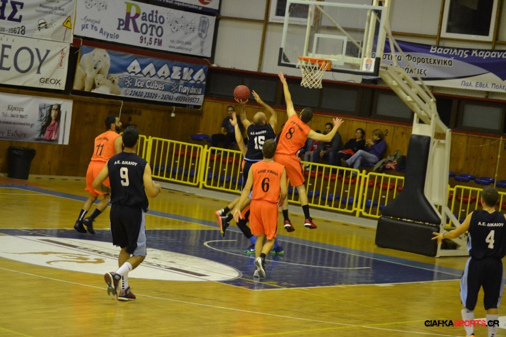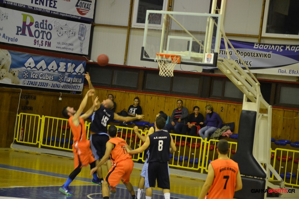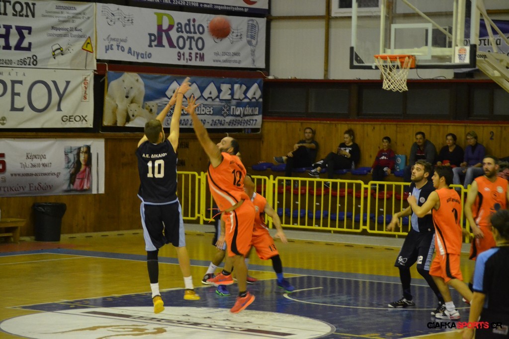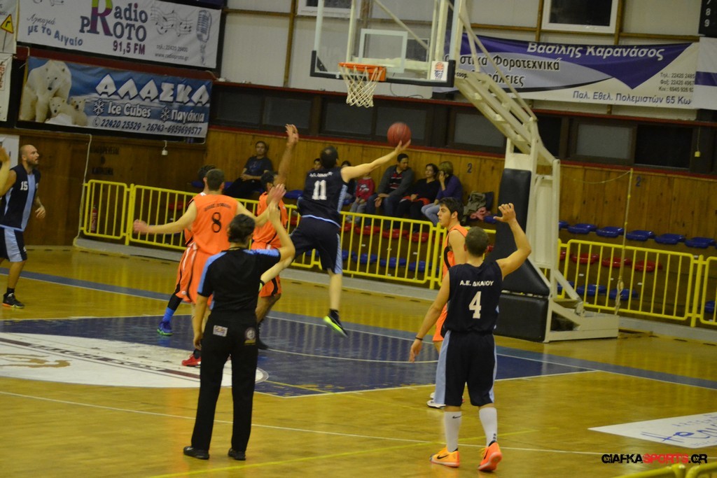 Πραγματοποιώντας μια εξαιρετική εμφάνιση ο Αίολος δυσκόλεψε αφάνταστα την Α.Ε Δικαίου αναγκάζοντας αφού ήταν μπροστά στο σκορ μέχρι και στο 3ο δεκάλεπτο με 52-50 και «έπεσε» ηρωικά, αφού οι «κυανόλευκοι» του Δημήτρη Τζομάκα ανέβασαν κατακόρυφα την απόδοση τους στο τελευταίο δεκάλεπτο και επικράτησαν τελικά με 62-74 για την εξ αναβολής αναμέτρηση της 3ης αγωνιστικής. Για την ΑΕΔ δεν αγωνίστηκε ο τραυματίας Χατζηγιακουμής.