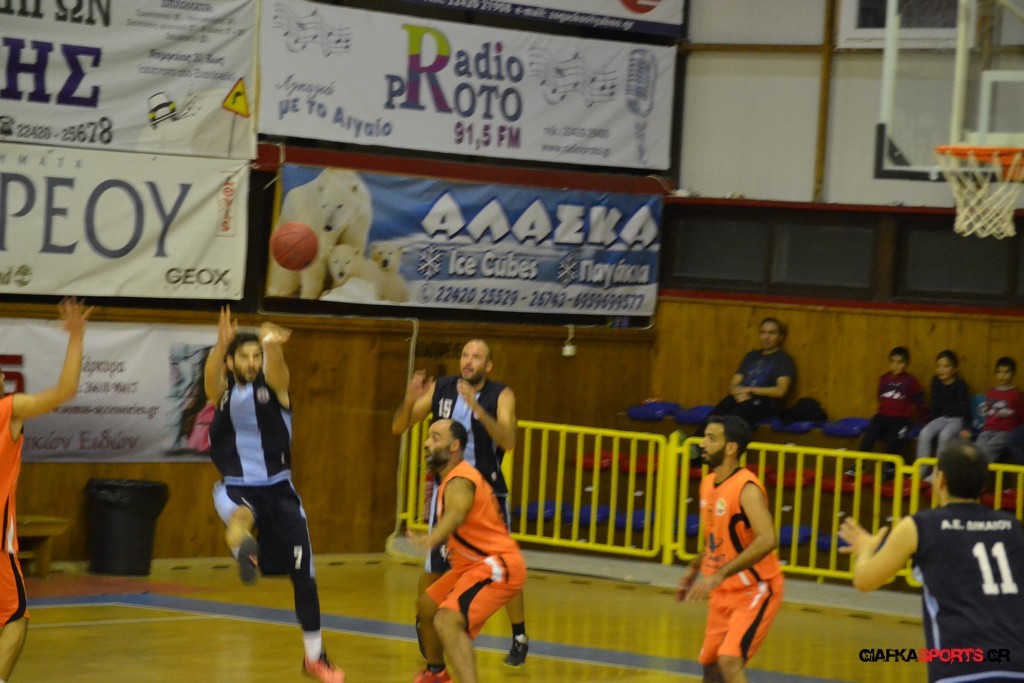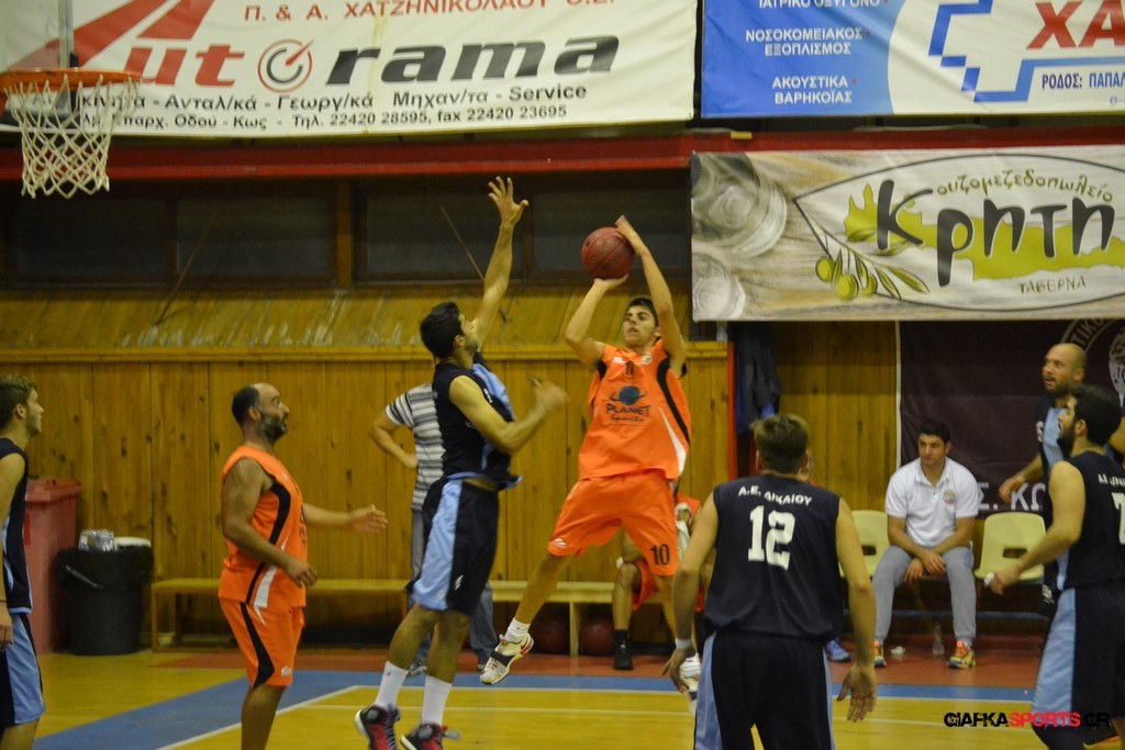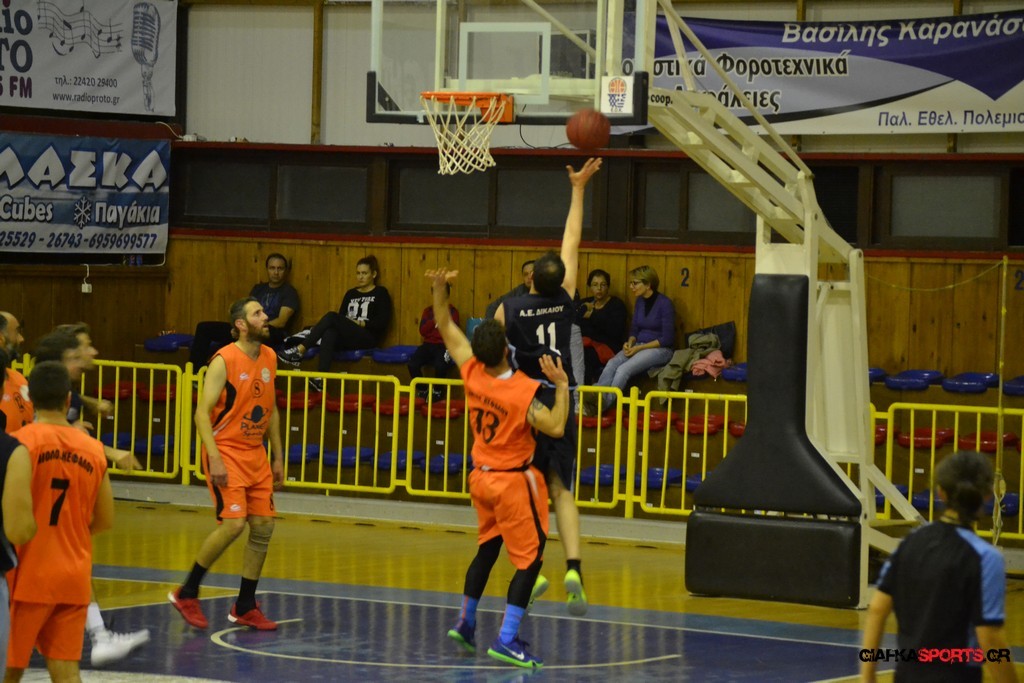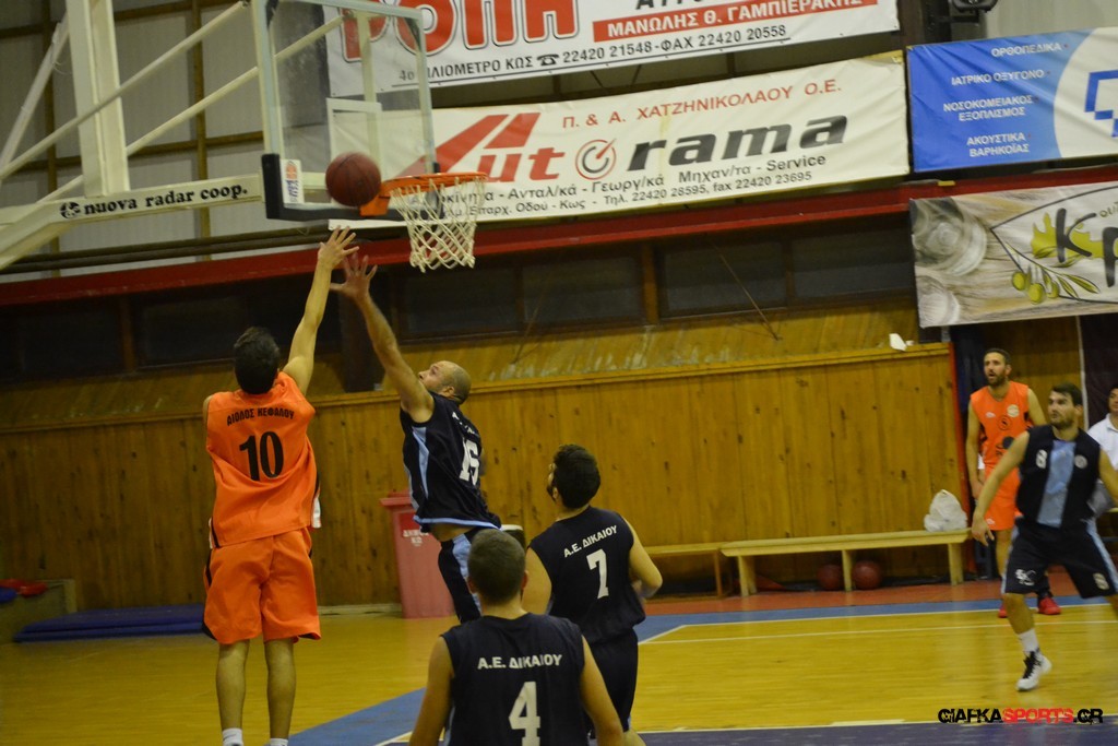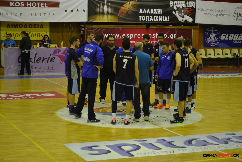Πραγματοποιώντας μια εξαιρετική εμφάνιση ο Αίολος δυσκόλεψε αφάνταστα την Α.Ε Δικαίου αναγκάζοντας αφού ήταν μπροστά στο σκορ μέχρι και στο 3ο δεκάλεπτο με 52-50 και «έπεσε» ηρωικά, αφού οι «κυανόλευκοι» του Δημήτρη Τζομάκα ανέβασαν κατακόρυφα την απόδοση τους στο τελευταίο δεκάλεπτο και επικράτησαν τελικά με 62-74 για την εξ αναβολής αναμέτρηση της 3ης αγωνιστικής. Για την ΑΕΔ δεν αγωνίστηκε ο τραυματίας Χατζηγιακουμής.
