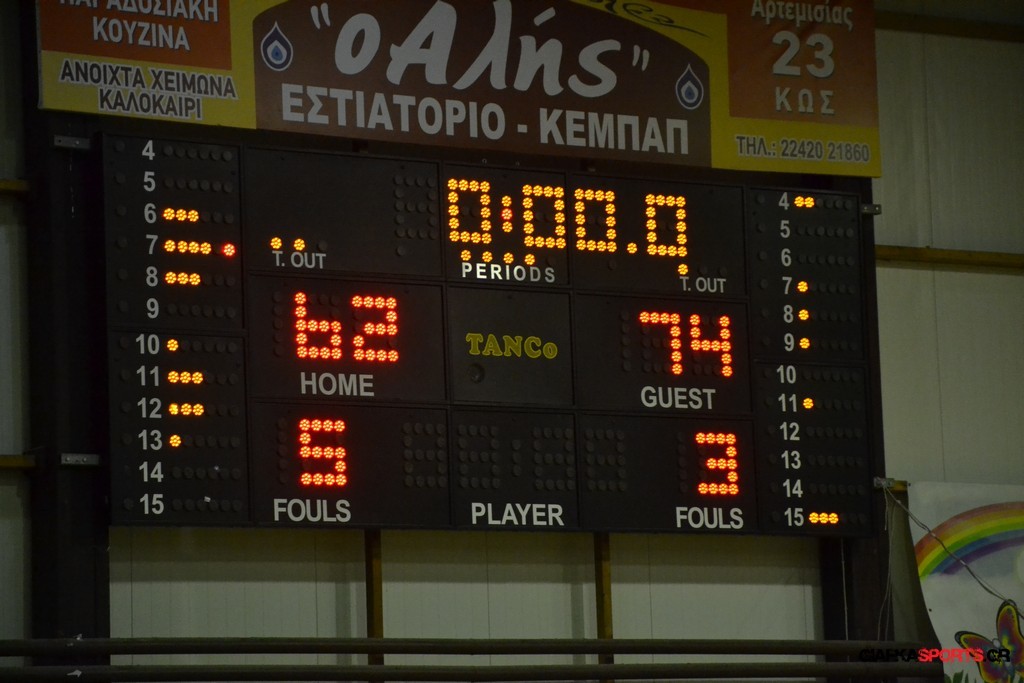Οι Κεφαλιανοί του Δημήτρη Μαράγκα είχαν σε μεγάλη μέρα τον Δημήτρη Σάζαλη που πέτυχε 24 πόντους με έξι (!!) τρίποντα ενώ ο Δίκαιος έδειχνε νωθρός και χωρίς ρυθμό για αρκετή ώρα στο ματς με τον Αίολο να το εκμεταλλεύεται στο έπακρο και να προηγείται στο 3ο δεκάλεπτο με 52-50.
