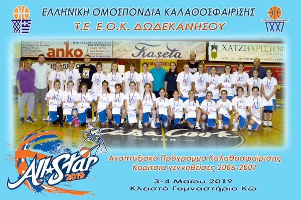 Με απόλυτη επιτυχία πραγματοποιήθηκε, από την Τ.Ε. Ε.Ο.Κ. Δωδεκανήσου, στο κλειστό γυμναστήριο της Κω το All Star Game για κορίτσια που γεννήθηκαν τα έτη 2006 και 2007. Συγκεκριμένα, διεξήχθησαν δυο προπονήσεις και ένα αγώνας μικτών ομάδων σύμφωνα με το πρόγραμμα υπό την καθοδήγηση των προπονητών Δημήτρη Τζομάκα και Γιώργου Χατζηκαλημέρη Στην τελετή λήξης απονεμήθηκαν στα κορίτσια που συμμετείχαν στο πρόγραμμα αναμνηστικά μπλουζάκια, αναμνηστικά διπλώματα συμμετοχής καθώς και ειδικά μετάλλια. Τις απονομές έκαναν οι παράγοντες των σωματείων: