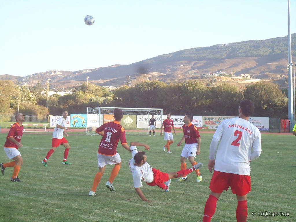 Χωρίς να πιάσει σπουδαία απόδοση σε ένα γενικό κακό παιχνίδι ο Αντίμαχος κατάφερε να επικρατήσει με 0-1 της Α.Ε Κω στο Νέο στάδιο Ανταγόρα και έκανε έτσι ακόμα ένα βήμα στην παραμονή στη κατηγορία. Αρκετά λάθη απ’ τους «κόκκινους» στην τελική πάσα αλλά η Α.Ε Κως χωρίς κάποιο πλάνο στο παιχνίδι της, δεν απείλησε καθόλου την εστία του Μιαούδη.
