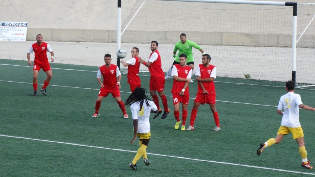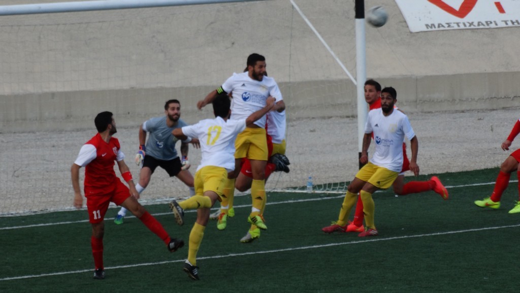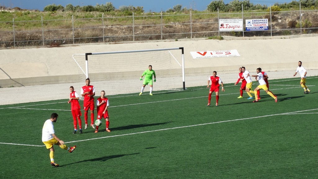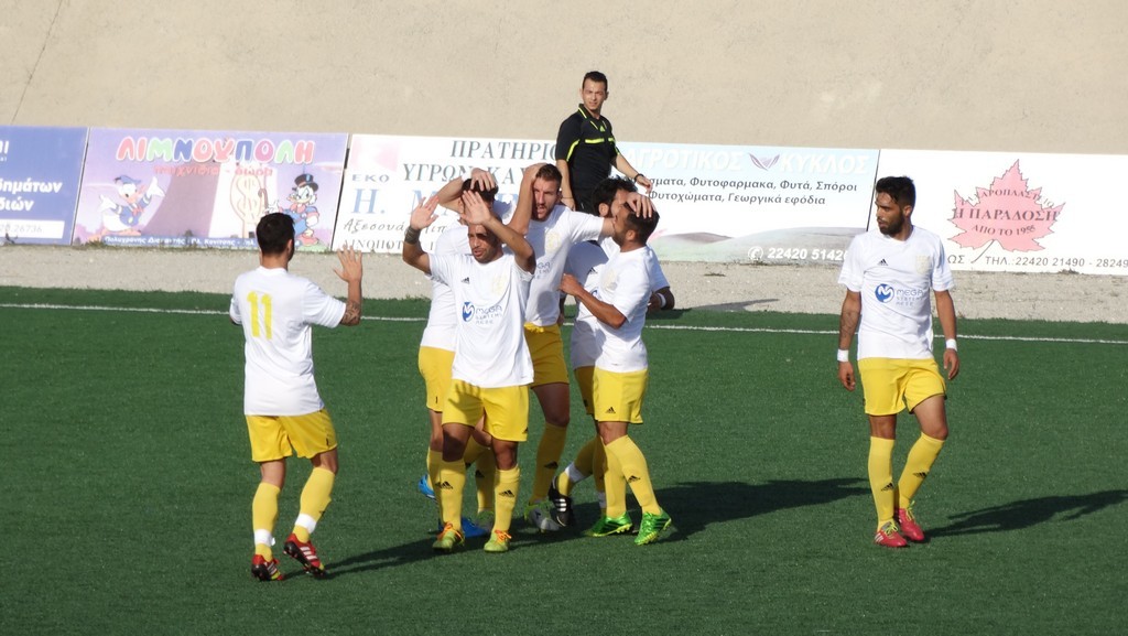 Το προβάδισμα πάντως κράτησε για λίγο για τους γηπεδούχους αφού ο Ιάλυσος με όπλο τους τις στημένες φάσεις, απείλησε άμεσα και αφού στο 10ο λεπτό κατάφερε να ισοφαρίσει με κοντινό πλασέ του Χατζηφούντα, στο 15ο λεπτό πήρε και προβάδισμα στο σκορ όταν μετά από εκτέλεση κόρνερ του Χατζηλιόντα απ’ τα δεξιά ο Φυλακούρης με κεφαλιά έστειλε τη μπάλα στην αριστερή γωνία του Μιαούδη για το 1-2 που ήταν και το αποτέλεσμα του πρώτου μέρους, αφού το σουτ του Παπανικολάου στο 26′ χτύπησε στο αριστερό δοκάρι του Λουτριώτη.