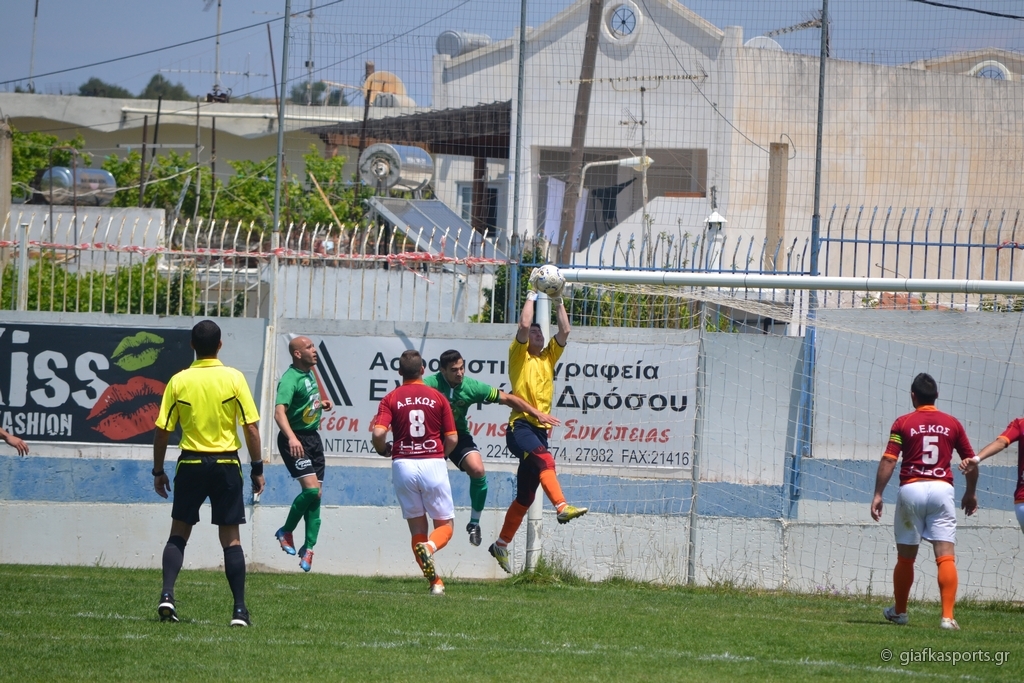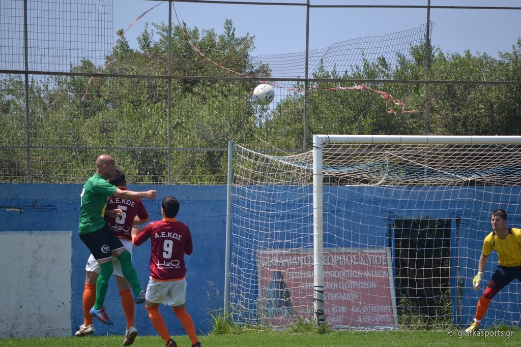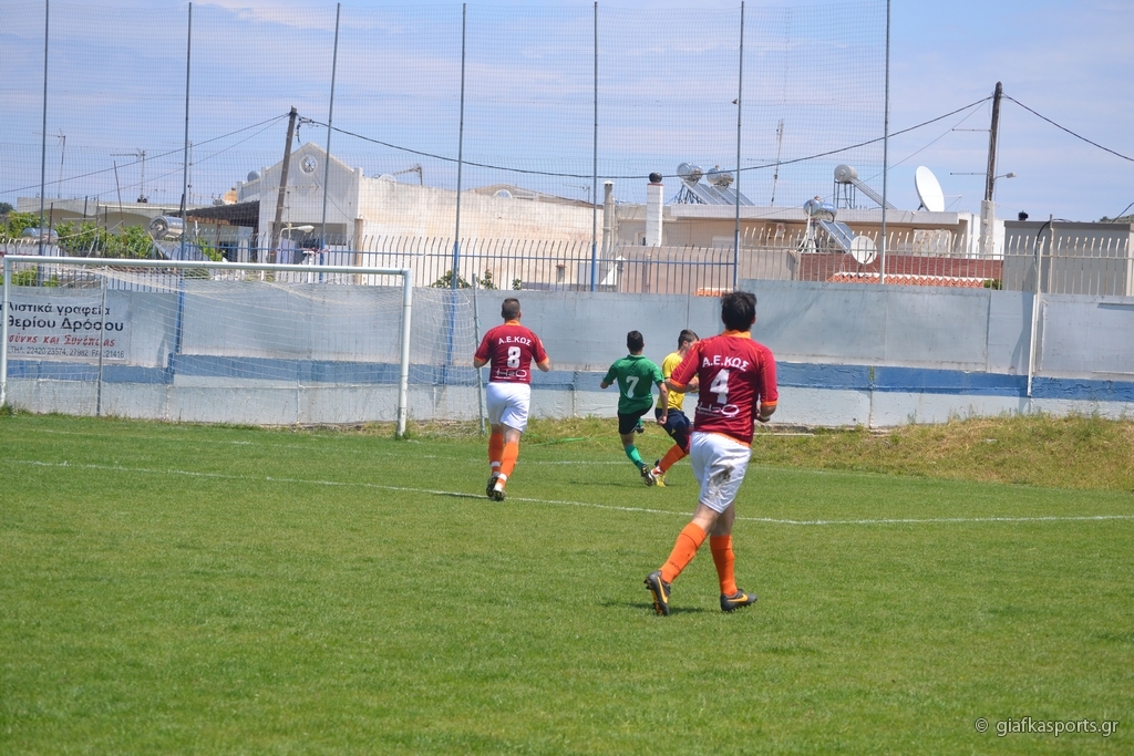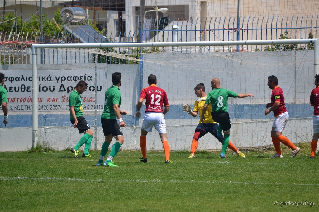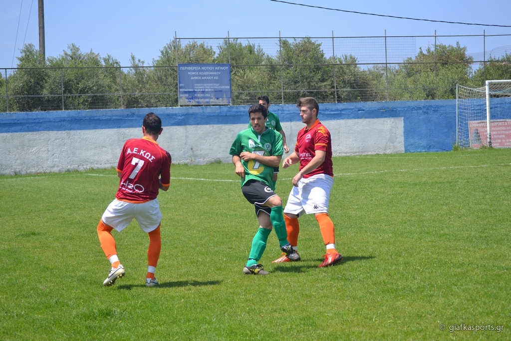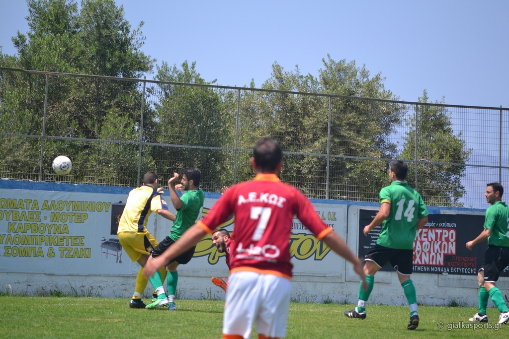 Την ήττα με 3-1 γνώρισε στο γήπεδο Πυλίου η Α.Ε Κως και έτσι ο Ευκλής Σορωνής θα είναι η ομάδα που θα περιμένει τον Ιάλυσο να ανέβει στην Γ’ Εθνική για να πανηγυρίσει με την σειρά του την άνοδο στην Α’ κατηγορία Δωδεκανήσου. Καλύτεροι στην μεγαλύτερη διάρκεια οι βυσσινί παρόλο που έχουν να προπονηθούν τουλάχιστον έναν μήνα αλλά προδόθηκαν από ατομικά λάθη και κούραση με την ομάδα του Μιχάλη Τσιβρινή στο τέλος να παίρνει τη νίκη.